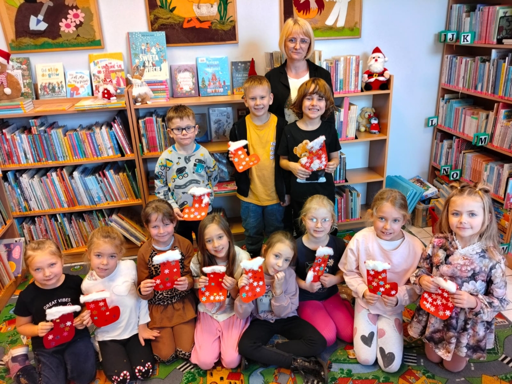 4 grudnia 2025 roku w Gminnej Bibliotece Publicznej Filia nr 3 w Sarnowie odbyły się wyjątkowe mikołajkowe lekcje biblioteczne, w których udział wzięli uczniowie klas pierwszych z ZSP nr 2 w Sarnowie. Już od pierwszych chwil w bibliotece panowała ciepła, świąteczna atmosfera, a dzieci z zaciekawieniem wzięły udział w przygotowanych zajęciach.
