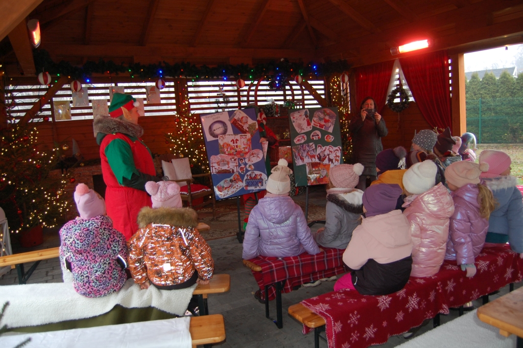 W czytaniu uczestniczyły grupy z przedszkola w Psarach, Sarnowie, Dąbiu i Gródkowie, a także najmłodsze maluchy ze żłobka w Psarach. Wioska Świętego Mikołaja tętniła życiem — słychać było śmiechy, szeptanie, wykrzykiwanie „A co dalej?” i to charakterystyczne, dziecięce „ooo!”, które jest najpiękniejszą recenzją każdego czytania.
