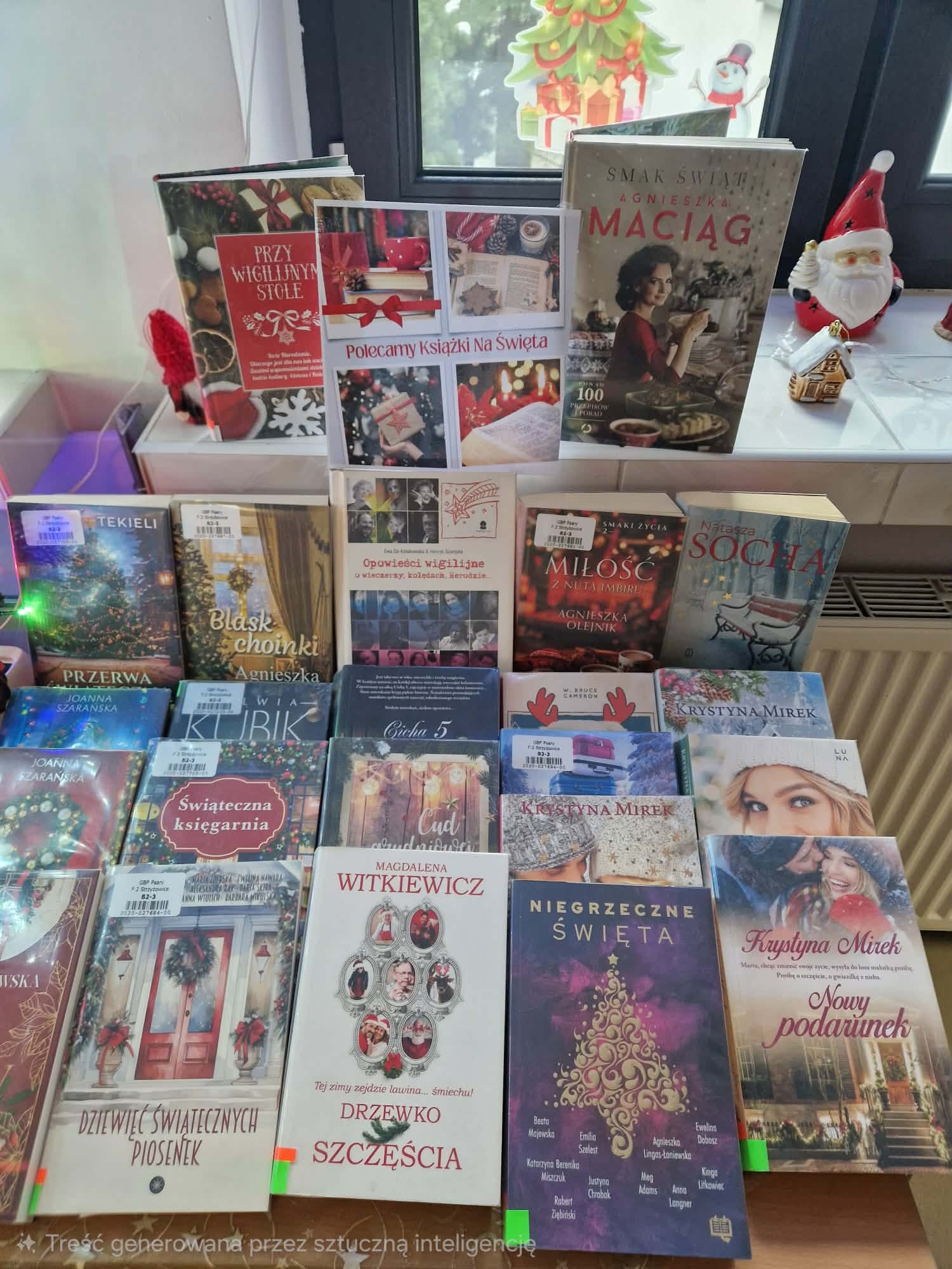 Z radością zapraszamy do Filii Nr 2 w Strzyżowicach, gdzie czeka na Was świąteczna wystawka pełna książek polecanych na ten wyjątkowy czas. Wpadnijcie, by odnaleźć swoją idealną lekturę na zimowe wieczory, taką, która ogrzeje serce i wprowadzi w prawdziwie bożonarodzeniowy nastrój.