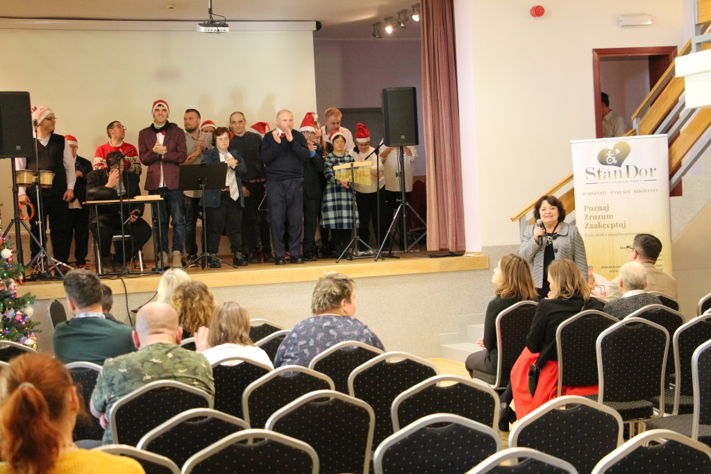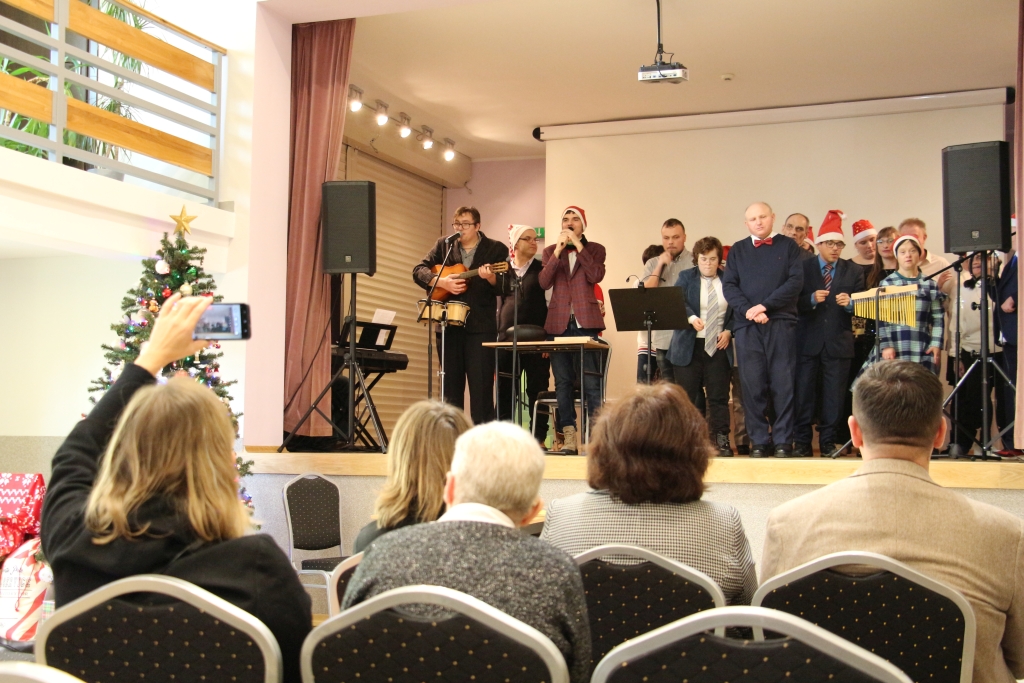 Młodzież z WTZ przygotowała kiermasz świątecznego rękodzieła — stoły mieniły się kolorami, fakturami i pomysłowością, która wzruszała swoją autentycznością. Każdy z przedmiotów niósł w sobie ślad pracy, serca i cierpliwości. Uczestnicy zaprezentowali również świąteczny występ artystyczny, wprowadzając publiczność w klimat nadchodzących świąt. Było w tym coś niezwykle szczerego — jakby ze sceny płynęła prostolinijna radość, która udzielała się wszystkim obecnym.