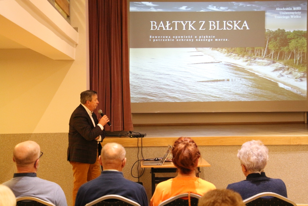 Miniony czwartek przyniósł słuchaczom Uniwersytetu Trzeciego Wieku w Psarach prawdziwą podróż — taką, którą odbywa się nie pociągiem ani samolotem, lecz wyobraźnią i sercem. A przewodnikiem po tej wędrówce był pan Zbigniew Łukasik, pasjonat przyrody, podróżnik i miłośnik polskiego wybrzeża.