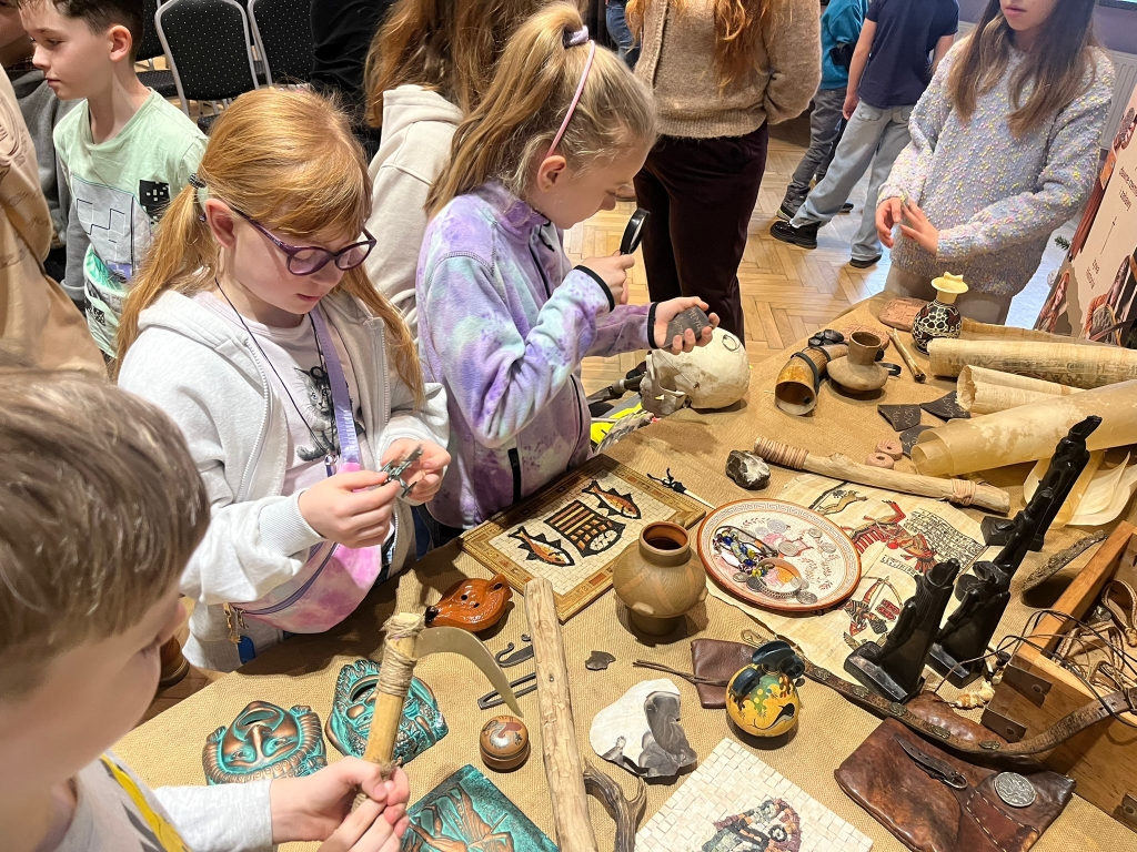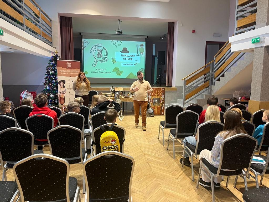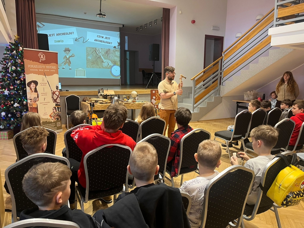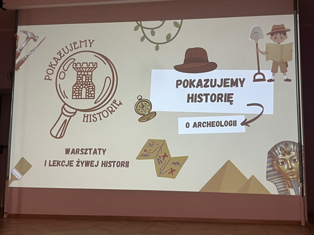 Następnie prowadzący wyjaśnili, kim jest archeolog i na czym polega jego praca. Uczniowie poznali przykłady przedmiotów odnajdywanych podczas wykopalisk, takich jak naczynia, narzędzia czy ozdoby. Zwrócono uwagę na to, że archeolodzy muszą pracować bardzo ostrożnie, aby nie zniszczyć odnalezionych zabytków.