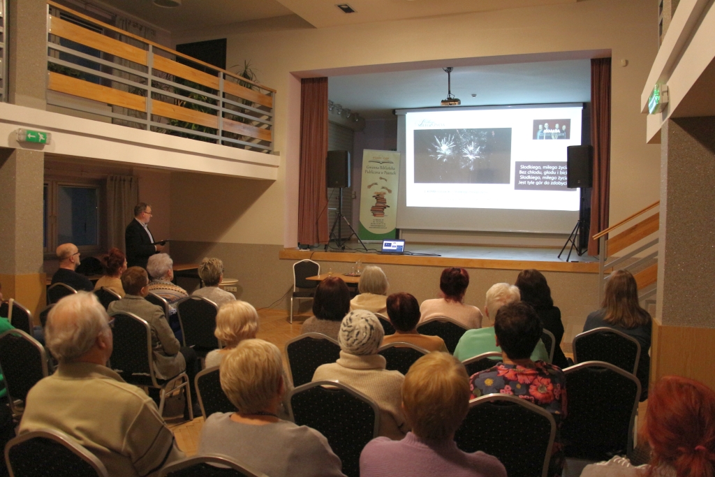 Spotkanie upłynęło w atmosferze skupienia, ale i ciepłych wspomnień. Nie zabrakło oczywiście wspólnego śpiewania oraz nowoczesnej formy tańca siedząc na krześle. Na twarzach słuchaczy pojawiały się uśmiechy, czasem zamyślenie, jakby każda opowieść uruchamiała prywatny magnetofon pamięci. Wykład prof. Mirosława Kisiela przypomniał nam, że piosenki minionych lat wciąż żyją – nie tylko w archiwach i na płytach, lecz przede wszystkim w nas samych, jako rytm przemian i czar wspomnień, do których chętnie wracamy.
