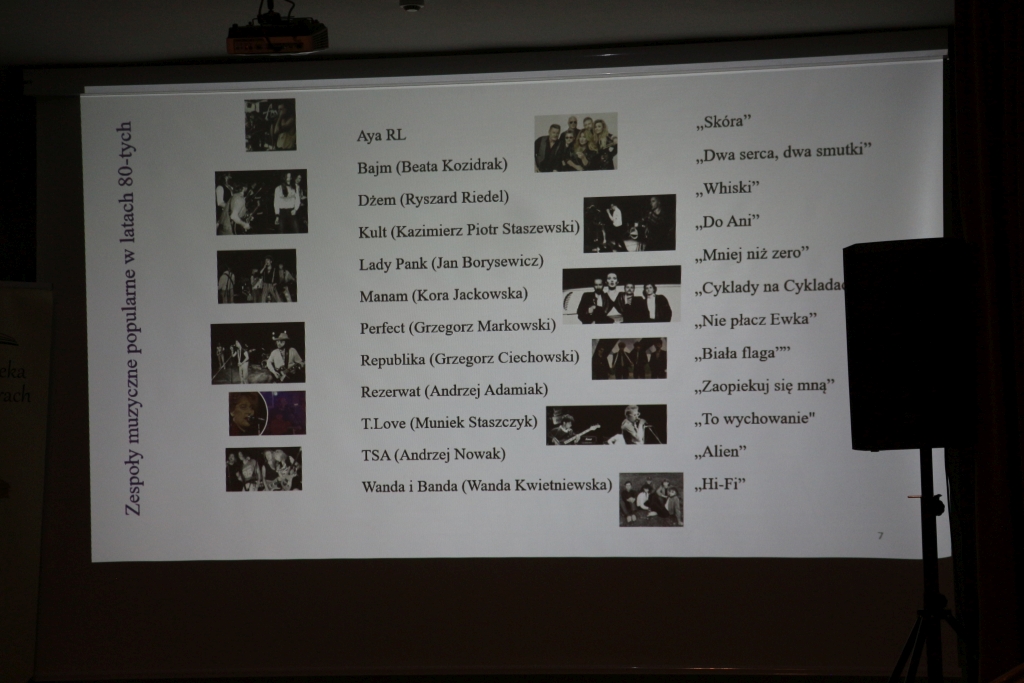 Profesor z pasją i swadą opowiadał o polskiej scenie muzycznej tamtych lat, przywołując zarówno wielkie nazwiska, jak i utwory, które do dziś brzmią w zbiorowej pamięci. Była mowa o rockowym buncie, poetyckiej zadumie, ironii i nadziei ukrytej między wersami. Piosenki lat 80. jawiły się w tej narracji jako kronika codziennych emocji, lęków i marzeń – zapisana nie w podręcznikach historii, lecz w refrenach nuconych pod nosem.