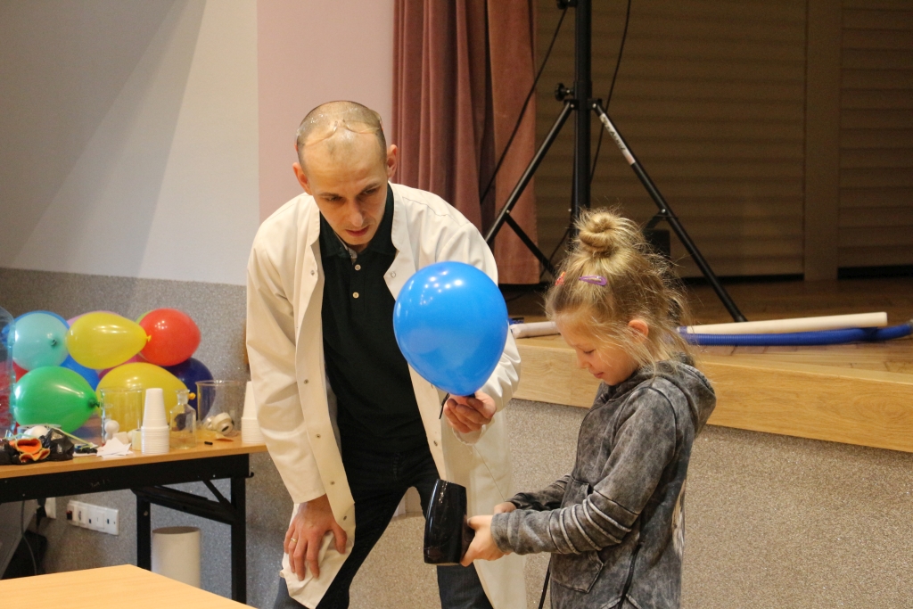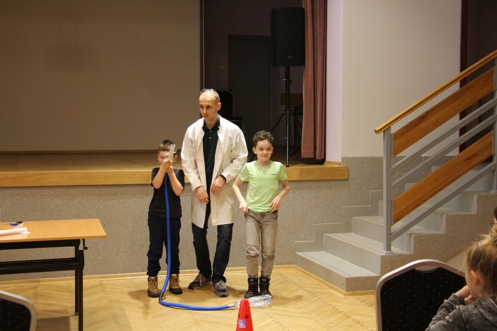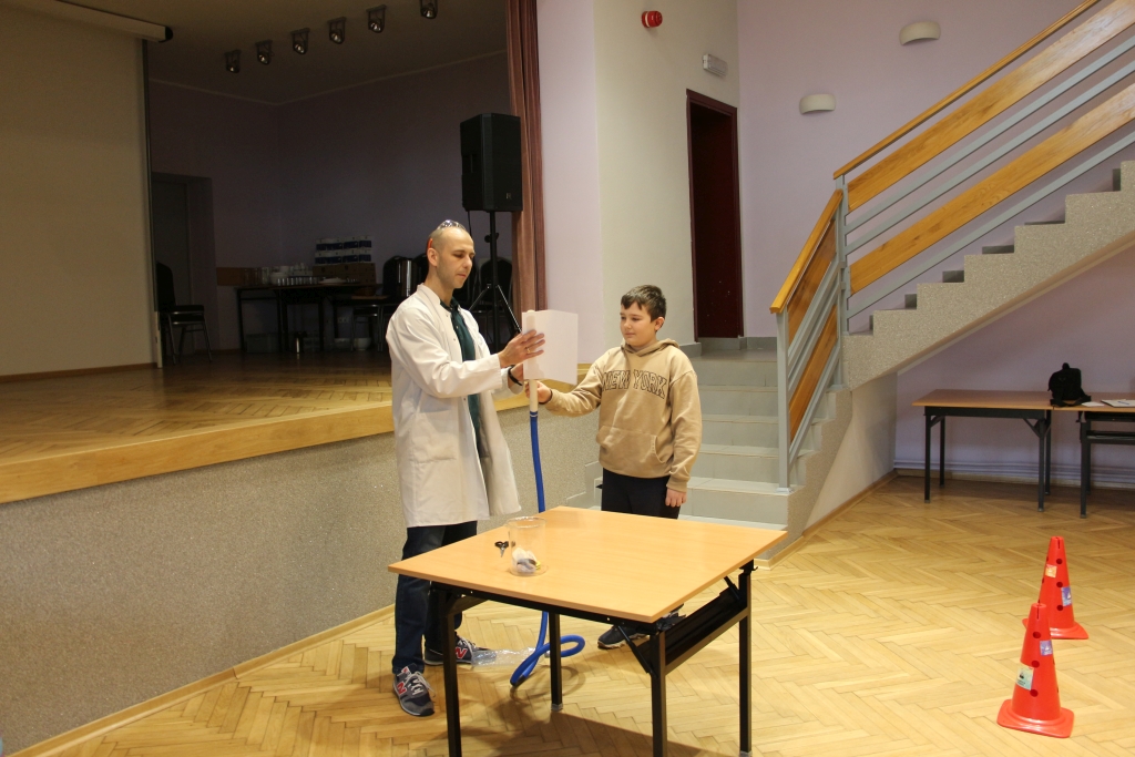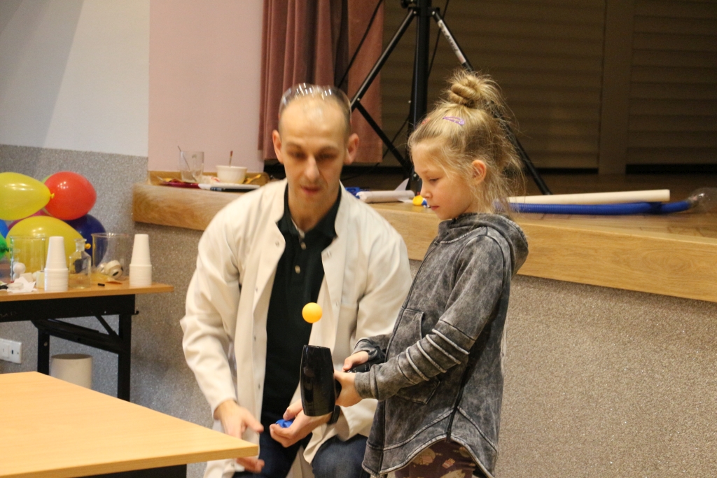 Skonstruowaliśmy wyrzutnię rakiet, która naprawdę działała! Strzelaliśmy powietrzem z bazooki – nie było to łatwe. Obserwowaliśmy „tańczące” piłeczki i wirujące baloniki. To co działo się na naszych oczach było magiczne, ale młodzi studenci, którzy bardzo aktywnie uczestniczyli w eksperymentach potwierdzają, że to jednak była nauka w najczystszej postaci. Ale – jak na każdych zajęciach z Panem Łukaszem, czujemy się zaczarowani.