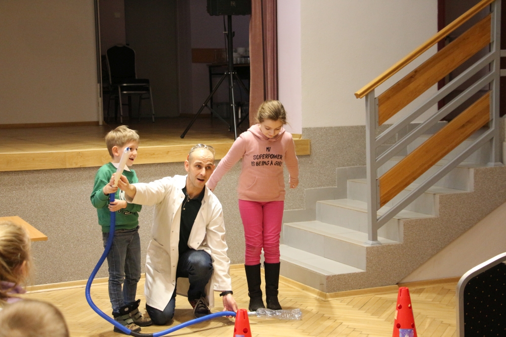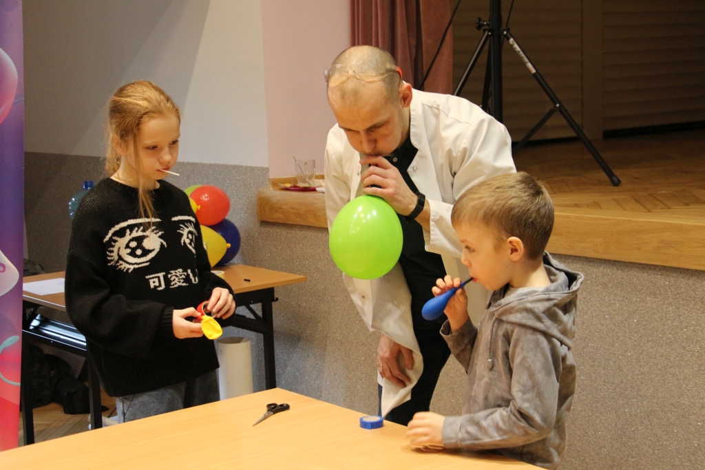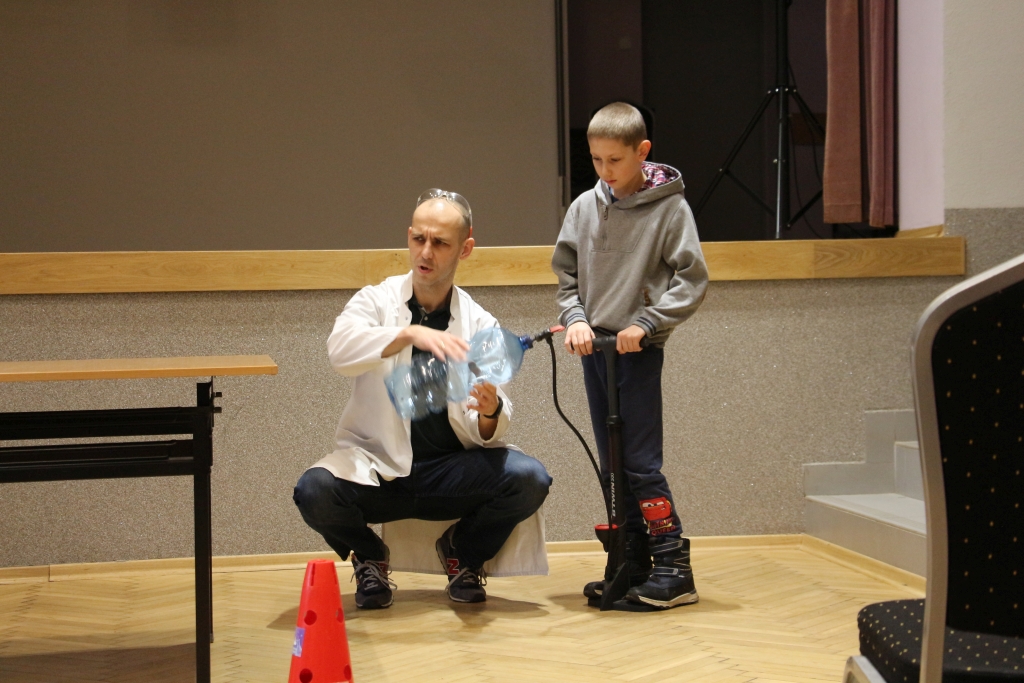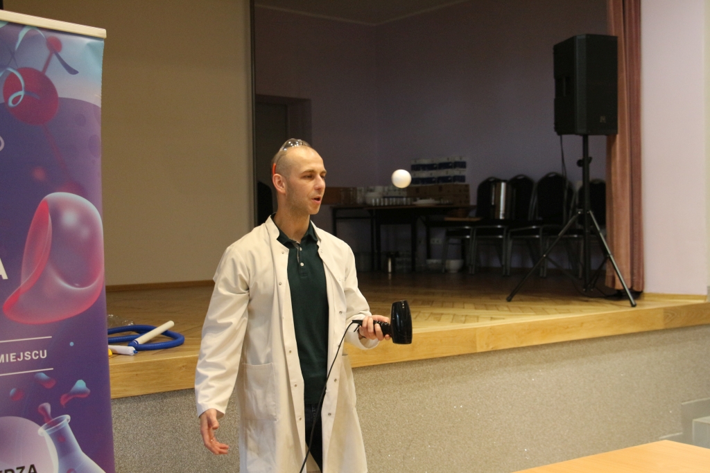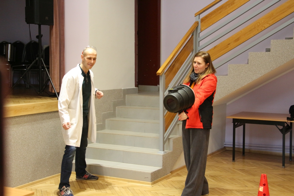 Skonstruowaliśmy wyrzutnię rakiet, która naprawdę działała! Strzelaliśmy powietrzem z bazooki – nie było to łatwe. Obserwowaliśmy „tańczące” piłeczki i wirujące baloniki. To co działo się na naszych oczach było magiczne, ale młodzi studenci, którzy bardzo aktywnie uczestniczyli w eksperymentach potwierdzają, że to jednak była nauka w najczystszej postaci. Ale – jak na każdych zajęciach z Panem Łukaszem, czujemy się zaczarowani.