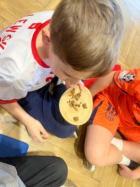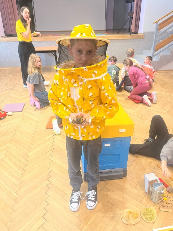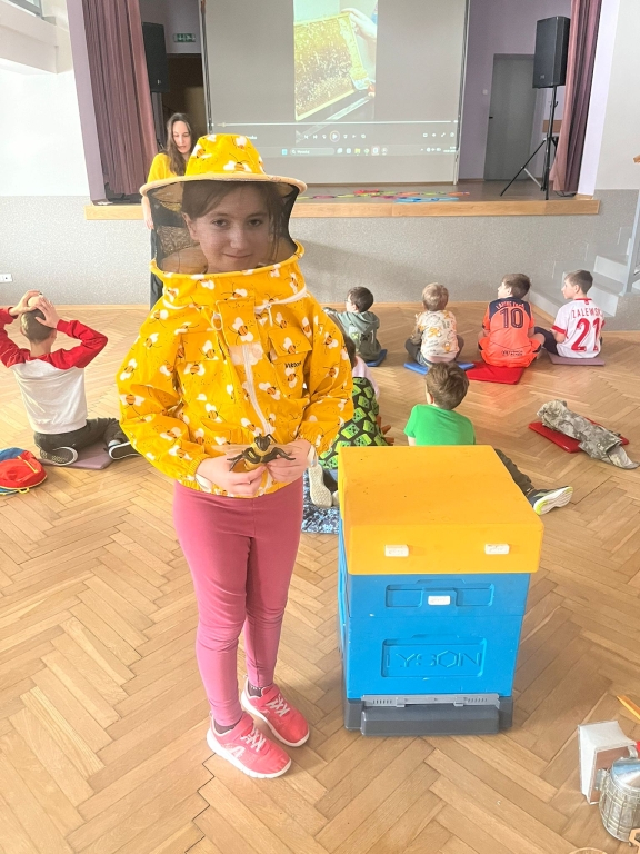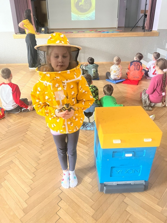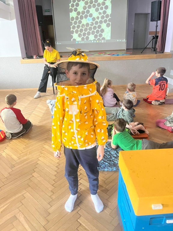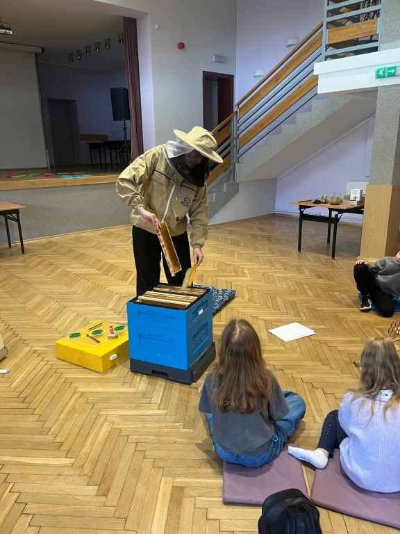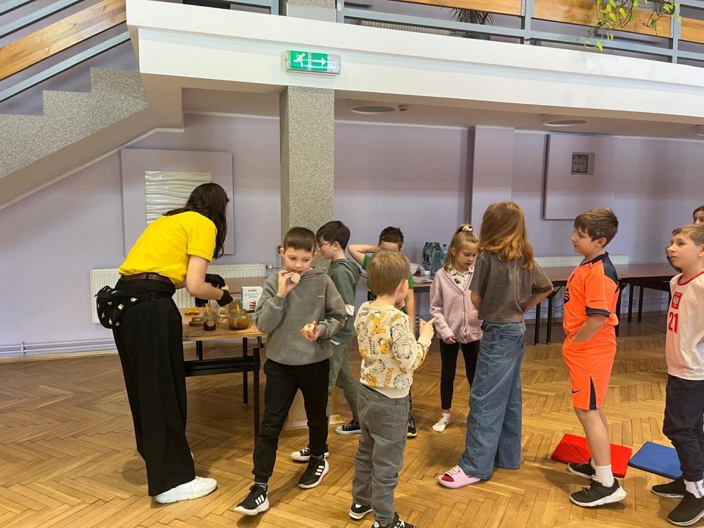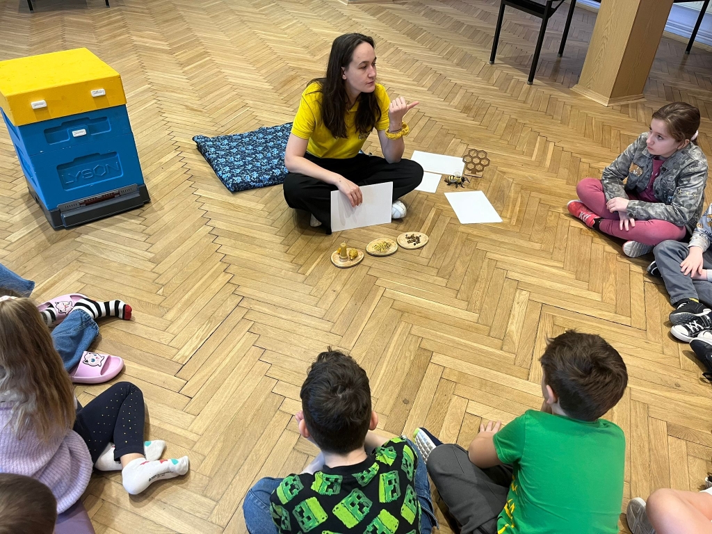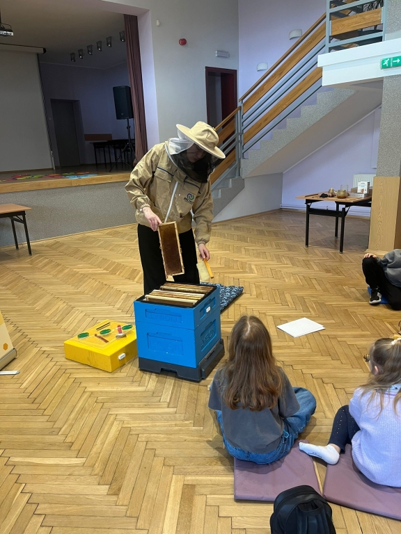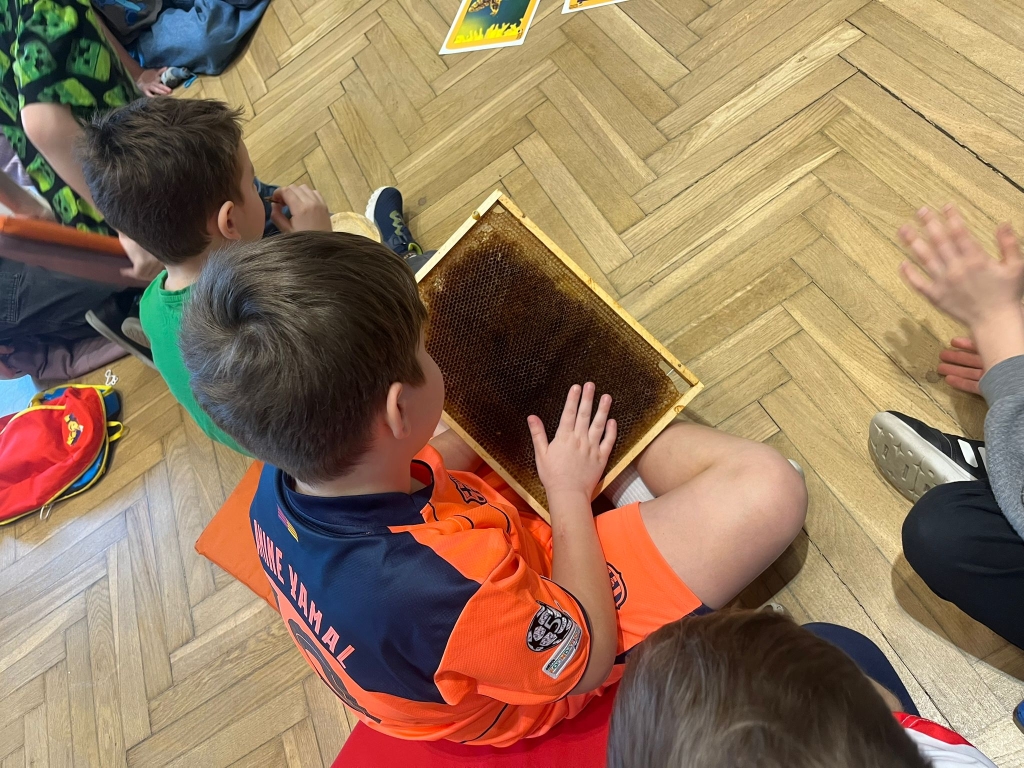 Podczas spotkania dzieci odkrywały sekrety ula: kim jest królowa, dlaczego robotnice nigdy nie próżnują i jak z nektaru rodzi się miód. Te opowieści nie były jednak tylko teorią – uczestnicy mogli z bliska obserwować pracę pszczół w ulu pokazowym, śledząc ich ruchy, jakby podglądali misternie zaplanowany spektakl natury.