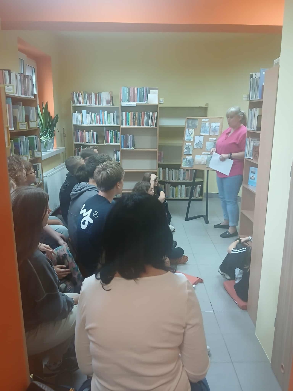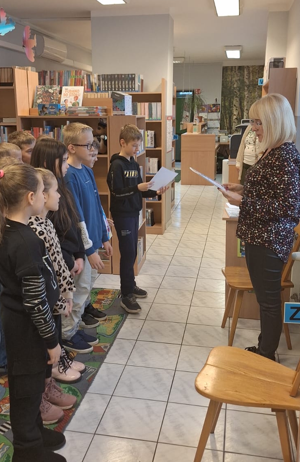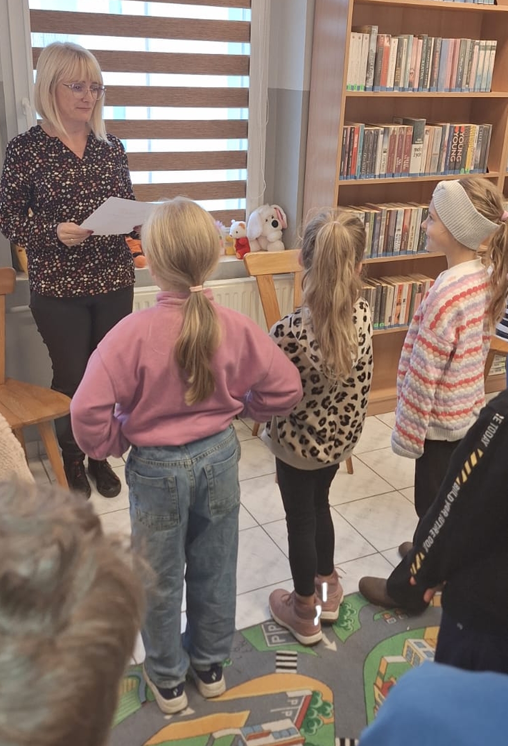 Spotkanie rozpoczęło się od krótkiego wprowadzenia, podczas którego bibliotekarka opowiedziała dzieciom o pracy biblioteki, o tym, jak można wypożyczać książki i jak należy o nie dbać. Uczniowie z zainteresowaniem słuchali, chętnie dzielili się swoimi doświadczeniami i opowiadali o ulubionych książkach, które czytają w domu lub w szkole. Dzieci z radością oglądały zbiory biblioteki, przeglądały książki przeznaczone dla najmłodszych i rozmawiały o tym, co chciałyby przeczytać podczas kolejnych wizyt.
