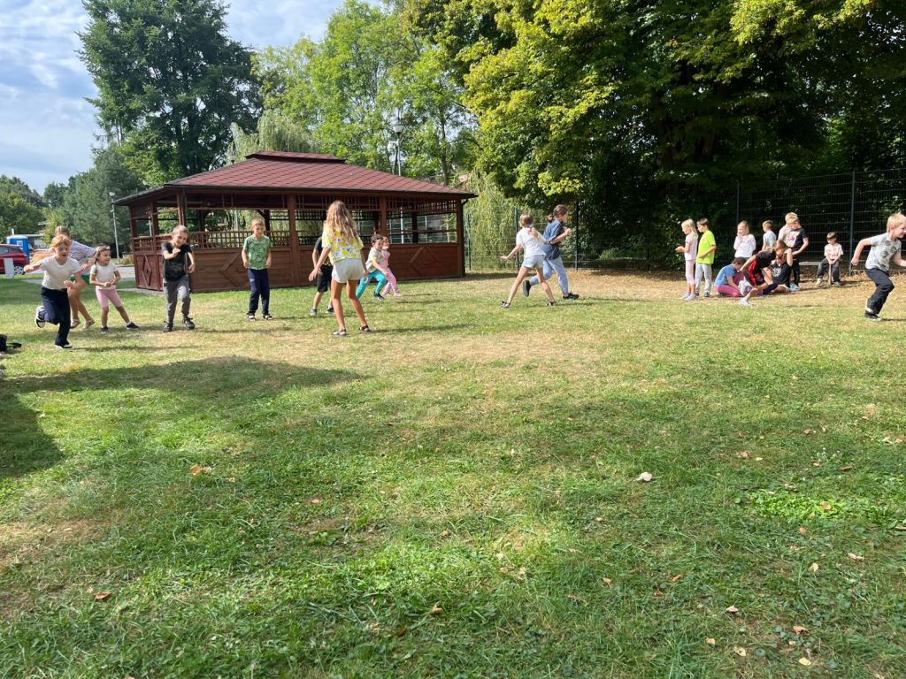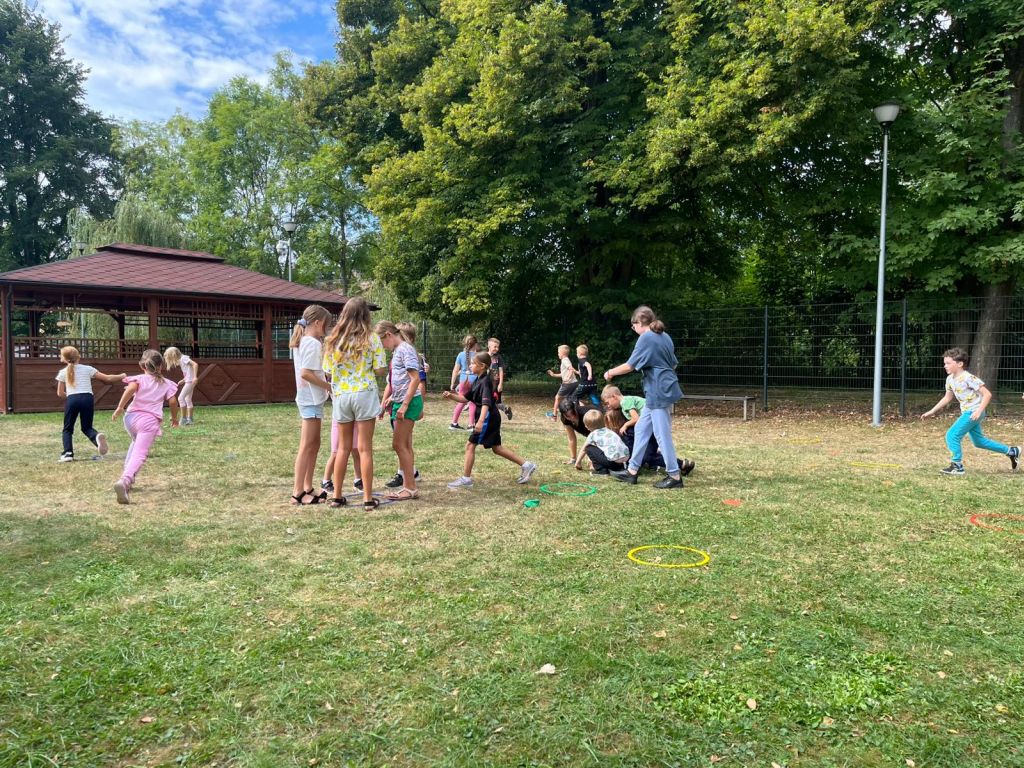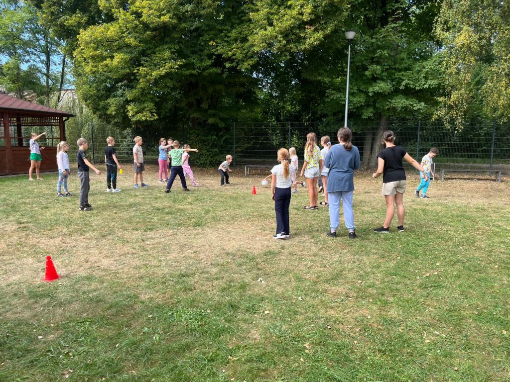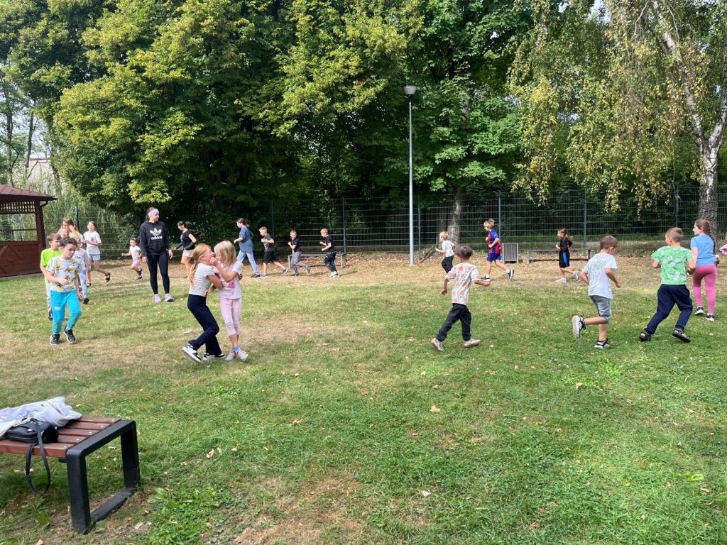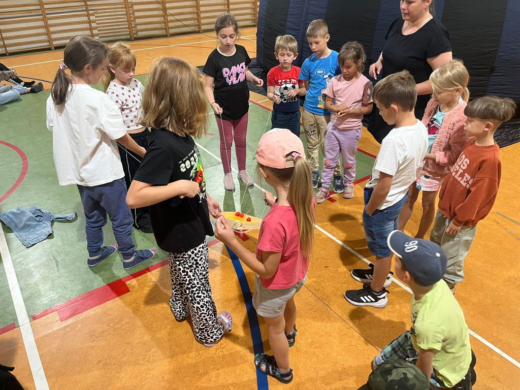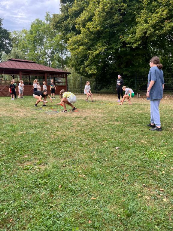Pani Oliwia przygotowała stacje testujące szybkość, zwinność i współpracę w drużynach. Były wyścigi rzędów, skoki w workach, przeciąganie liny i zabawy z piłką. Uczestnicy wykazali się ogromnym entuzjazmem i duchem rywalizacji.