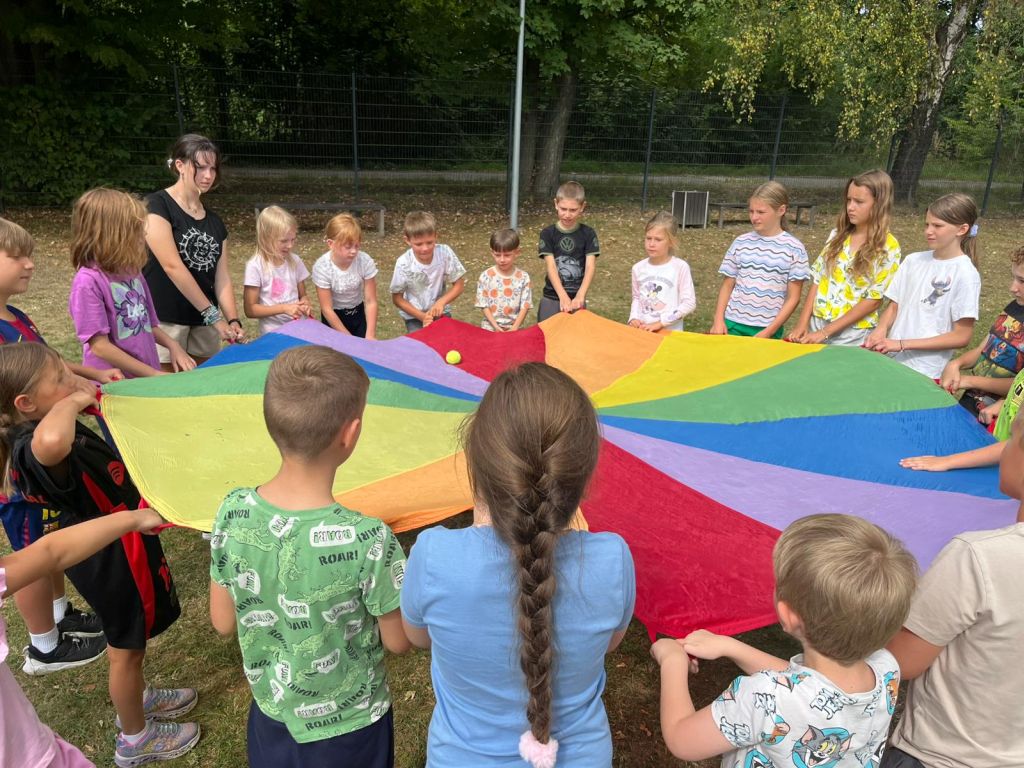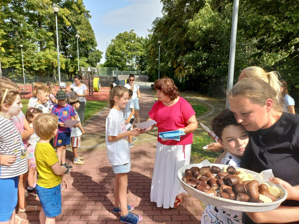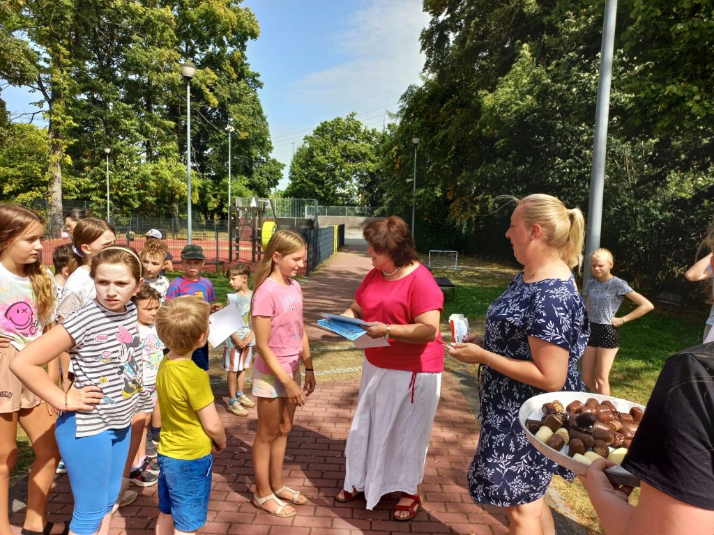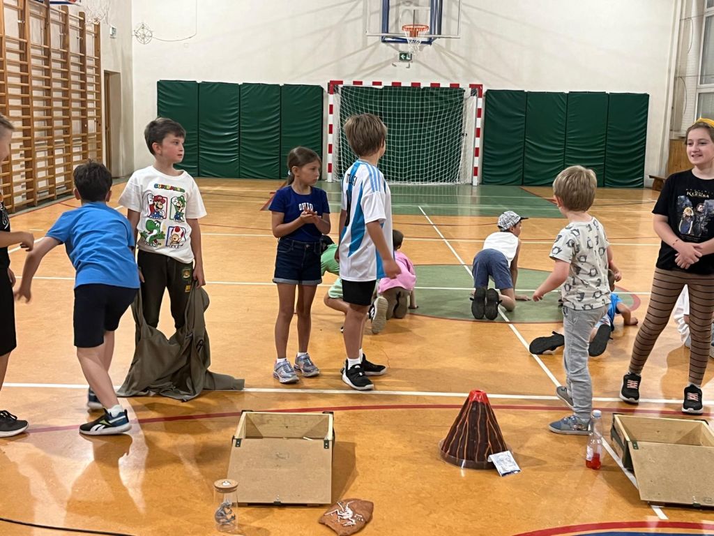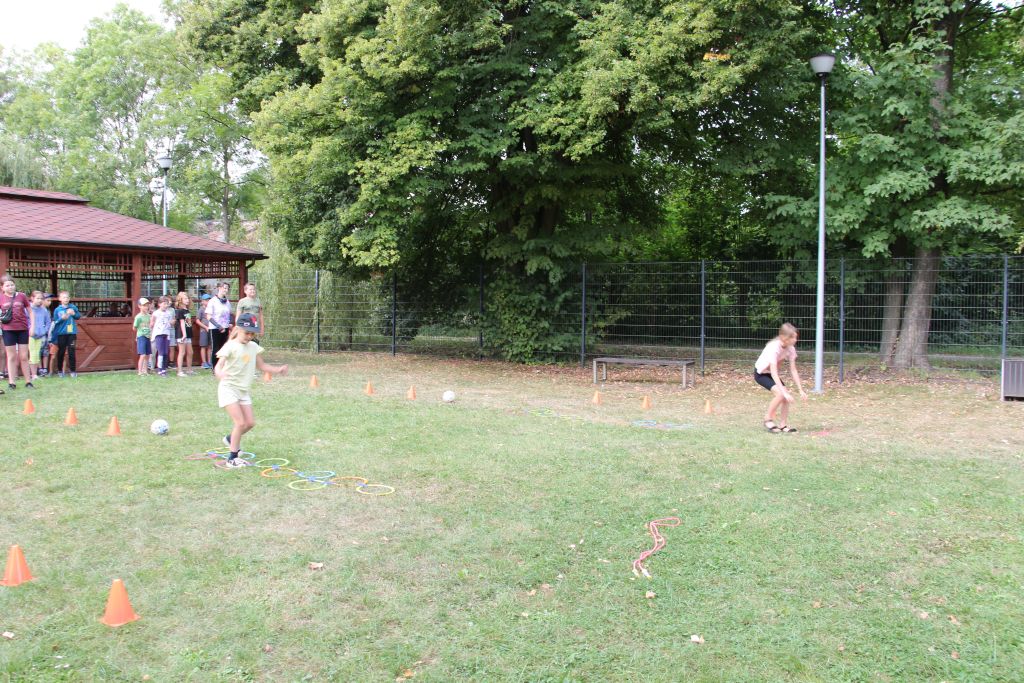 Pani Oliwia przygotowała stacje testujące szybkość, zwinność i współpracę w drużynach. Były wyścigi rzędów, skoki w workach, przeciąganie liny i zabawy z piłką. Uczestnicy wykazali się ogromnym entuzjazmem i duchem rywalizacji.