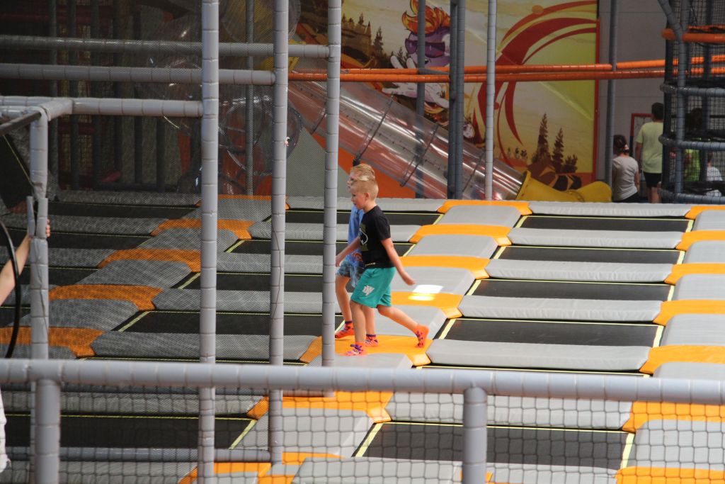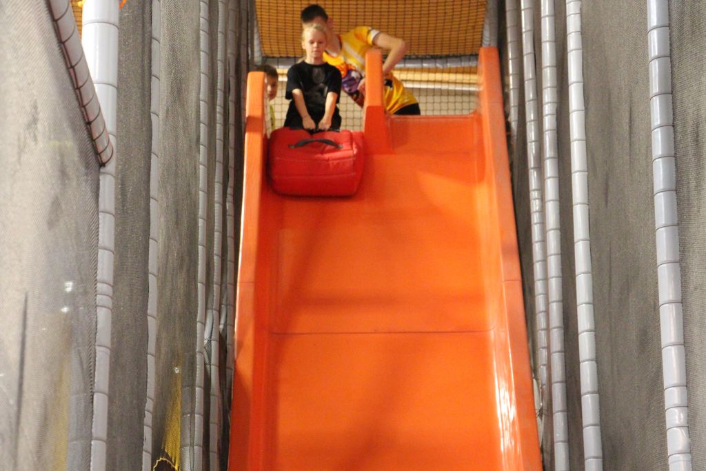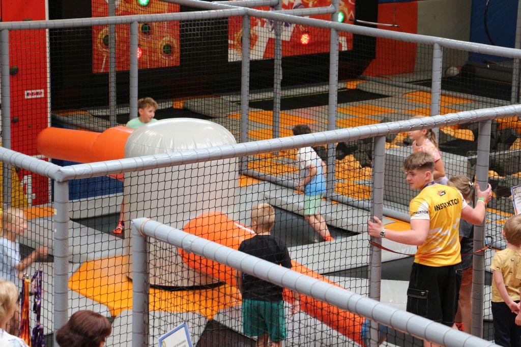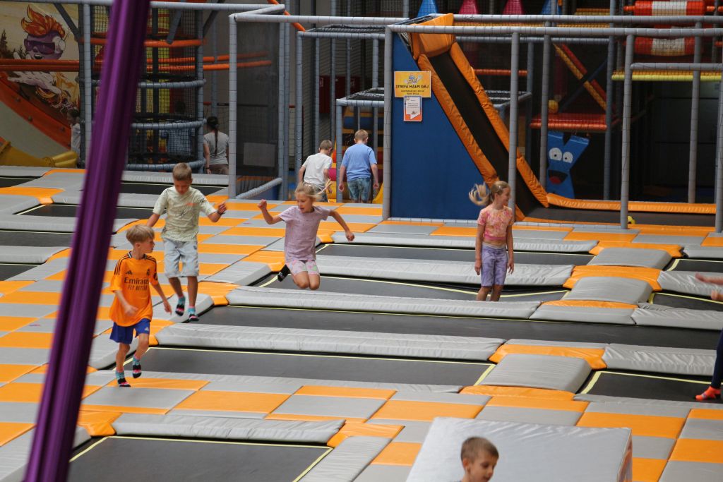 Już od progu uwagę dzieci przyciągnął kolorowy „małpi gaj”. Tunele, zjeżdżalnie i siatkowe mostki sprawiły, że maluchy niemal natychmiast ruszyły do zabawy. Starsze dzieci szybko obrały inny kierunek – w stronę trampolin i ogromnej poduchy do skoków. Tam przez długie minuty trwały zawody: kto skoczy wyżej, kto wykona bardziej widowiskowe obroty.