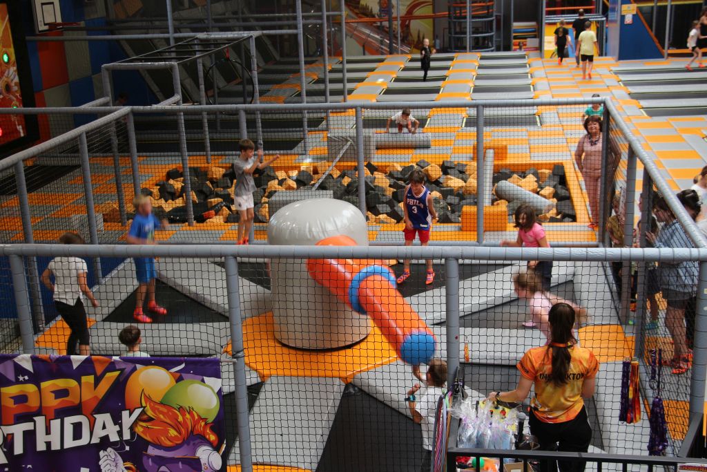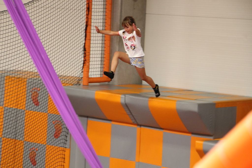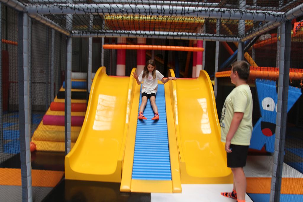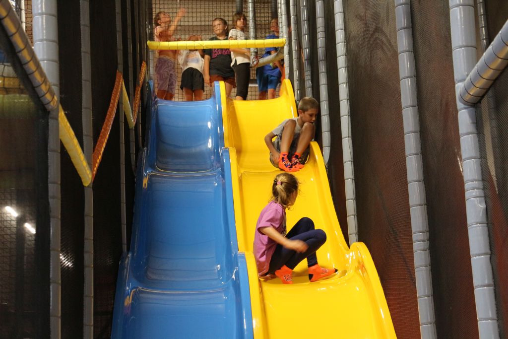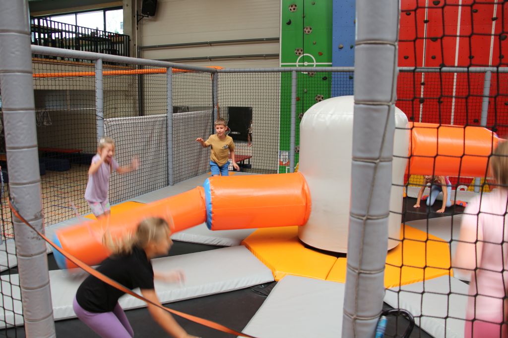 Już od progu uwagę dzieci przyciągnął kolorowy „małpi gaj”. Tunele, zjeżdżalnie i siatkowe mostki sprawiły, że maluchy niemal natychmiast ruszyły do zabawy. Starsze dzieci szybko obrały inny kierunek – w stronę trampolin i ogromnej poduchy do skoków. Tam przez długie minuty trwały zawody: kto skoczy wyżej, kto wykona bardziej widowiskowe obroty.