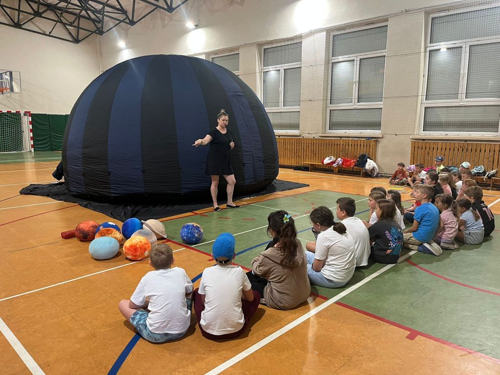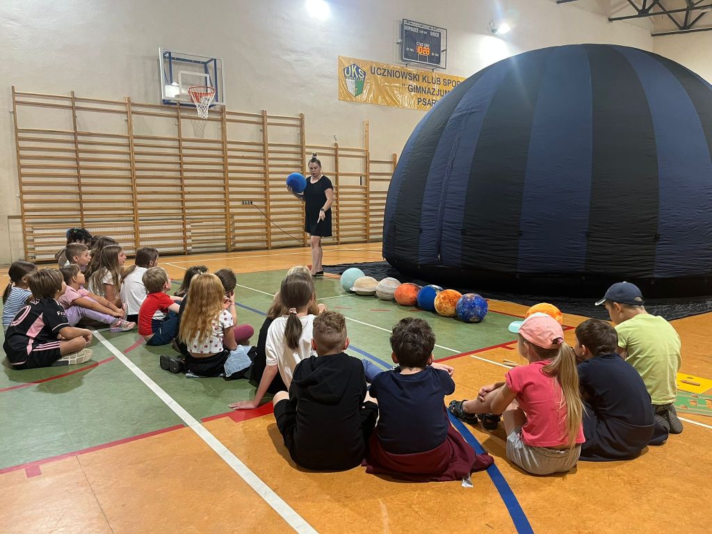 Mobilne Planetarium w Psarach: nadmuchiwana kopuła w szkolnej sali gimnastycznej zamieniła się w rozgwieżdżone niebo. Pokazy przybliżyły tajemnice kosmosu i skłoniły do zadawania pytań o wszechświat.