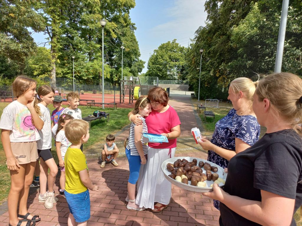 Zakończenie "Wakacji z Biblioteką" to przede wszystkim wręczenie pamiątkowych dyplomów każdemu uczestnikowi. Dokonała tego dyrekto GBP w Psarach Helena Warczok. Potem nastąpiła wielka wojna na kolorowy proszek i szaleństwo na dmuchanych zjeżdżalniach. Po intensywnych dniach pełnych wrażeń dzieci opuszczały bibliotekę zmęczone, ale pełne radosnych wspomnień, gotowe na powrót do szkoły z uśmiechem na twarzy.