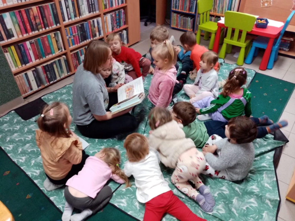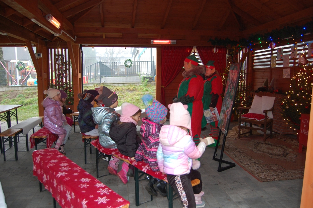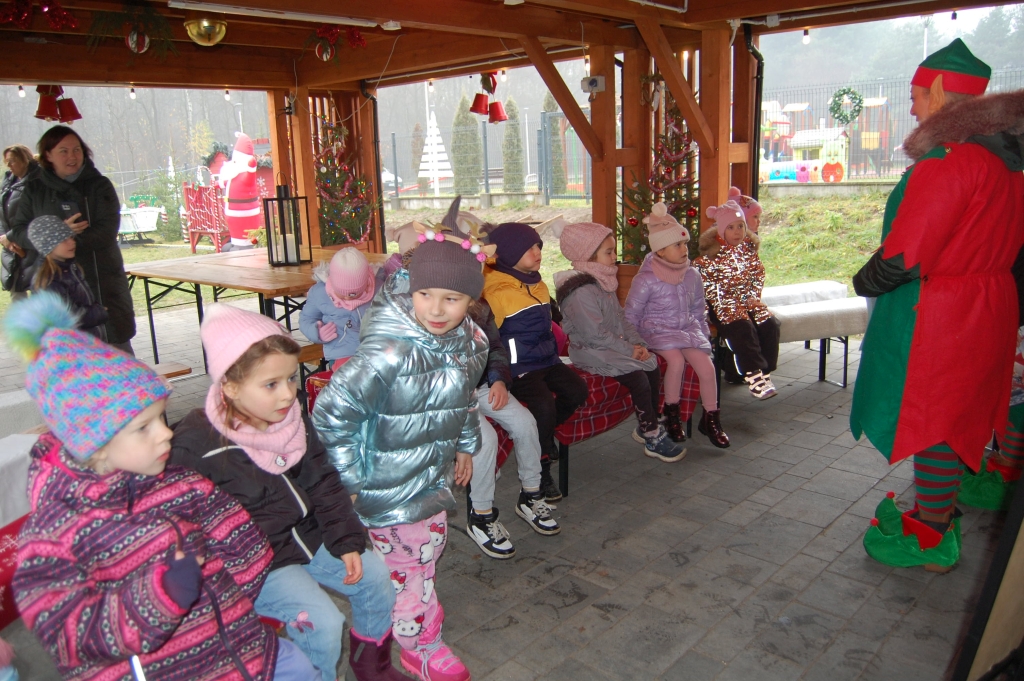 W czytaniu uczestniczyły grupy z przedszkola w Psarach, Sarnowie, Dąbiu i Gródkowie, a także najmłodsze maluchy ze żłobka w Psarach. Wioska Świętego Mikołaja tętniła życiem — słychać było śmiechy, szeptanie, wykrzykiwanie „A co dalej?” i to charakterystyczne, dziecięce „ooo!”, które jest najpiękniejszą recenzją każdego czytania.