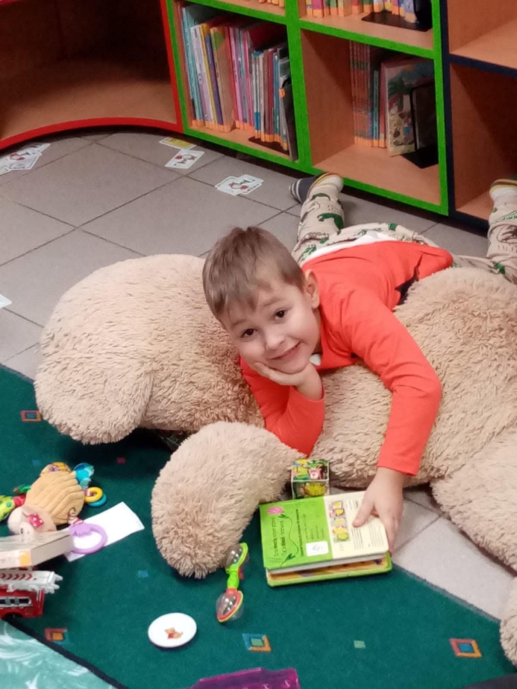 Światowy Dzień Pluszowego Misia. Z tej okazji bibliotekę w Dąbiu odwiedziły dwie grupy przedszkolaków. Dzieci w pełnym skupieniu wysłuchały bajki o Kubusiu Puchatku i jego przyjaciołach. Przedszkolaki dowiedziały się również jaka jest historia pluszowego misia i skąd się właściwie wziął. Potem przyszedł czas na quiz o bajkowych misiach, z którym zarówno młodsza jak i starsza grupa świetnie sobie poradziły. Każde dziecko miało także możliwość podzielenia się opowieściami o swoich ukochanych pluszakach. Na koniec dzieci mogły się pobawić z ogromnym pluszowym misiem, który tego dnia odwiedził Bibliotekę w Dąbiu oraz czekała je słodka niespodzianka.