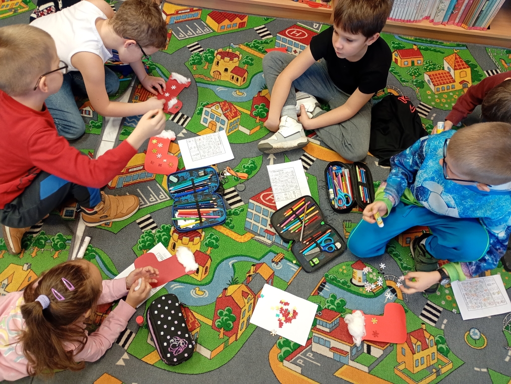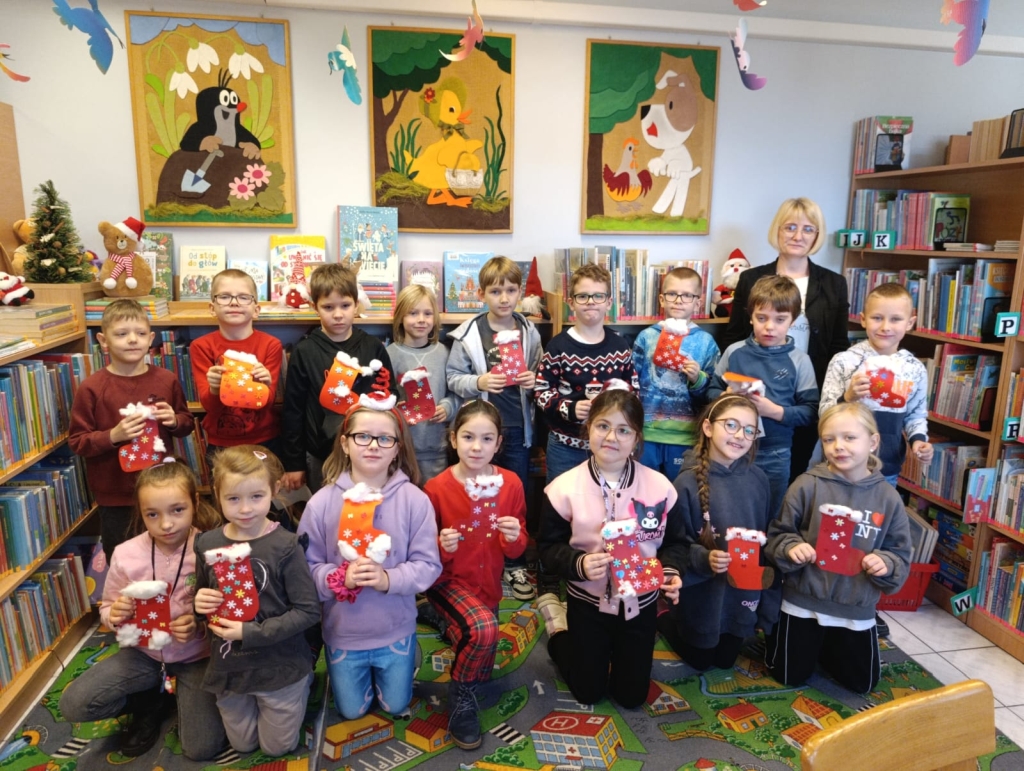4 grudnia 2025 roku w Gminnej Bibliotece Publicznej Filia nr 3 w Sarnowie odbyły się wyjątkowe mikołajkowe lekcje biblioteczne, w których udział wzięli uczniowie klas pierwszych z ZSP nr 2 w Sarnowie. Już od pierwszych chwil w bibliotece panowała ciepła, świąteczna atmosfera, a dzieci z zaciekawieniem wzięły udział w przygotowanych zajęciach.