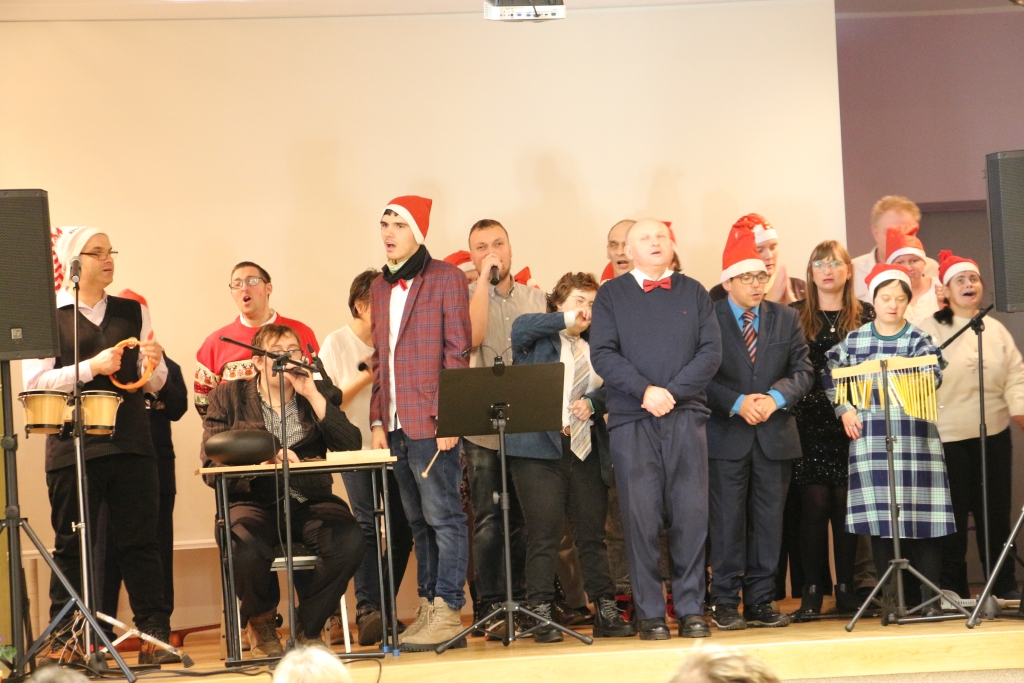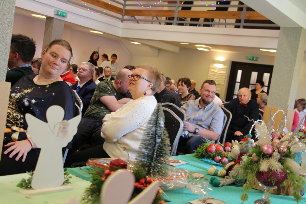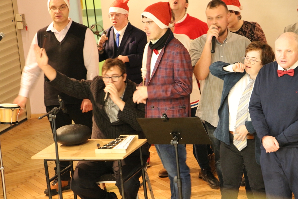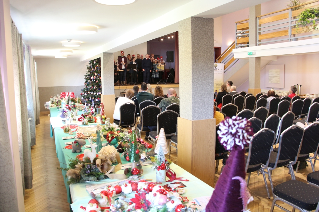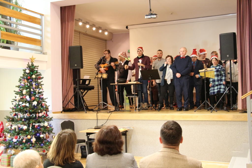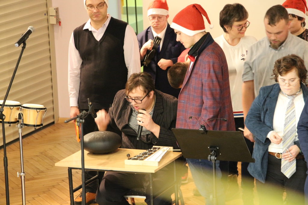 Młodzież z WTZ przygotowała kiermasz świątecznego rękodzieła — stoły mieniły się kolorami, fakturami i pomysłowością, która wzruszała swoją autentycznością. Każdy z przedmiotów niósł w sobie ślad pracy, serca i cierpliwości. Uczestnicy zaprezentowali również świąteczny występ artystyczny, wprowadzając publiczność w klimat nadchodzących świąt. Było w tym coś niezwykle szczerego — jakby ze sceny płynęła prostolinijna radość, która udzielała się wszystkim obecnym.