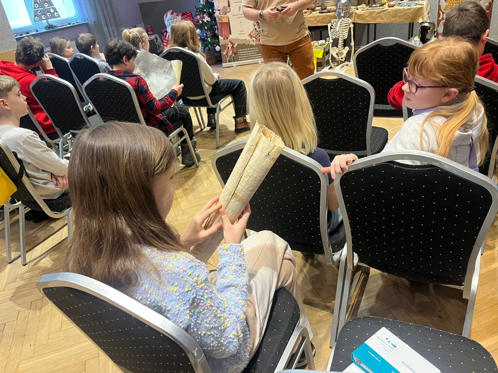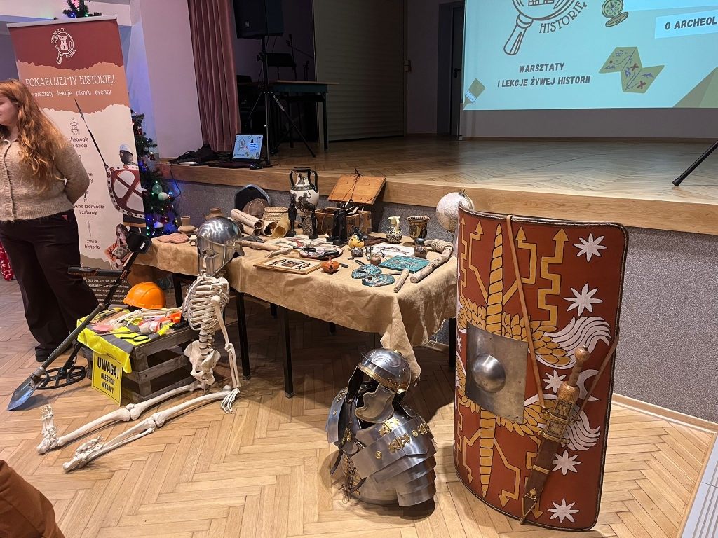 Następnie prowadzący wyjaśnili, kim jest archeolog i na czym polega jego praca. Uczniowie poznali przykłady przedmiotów odnajdywanych podczas wykopalisk, takich jak naczynia, narzędzia czy ozdoby. Zwrócono uwagę na to, że archeolodzy muszą pracować bardzo ostrożnie, aby nie zniszczyć odnalezionych zabytków.