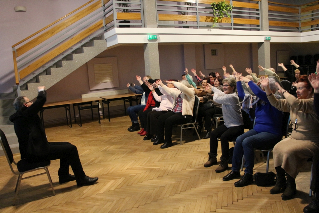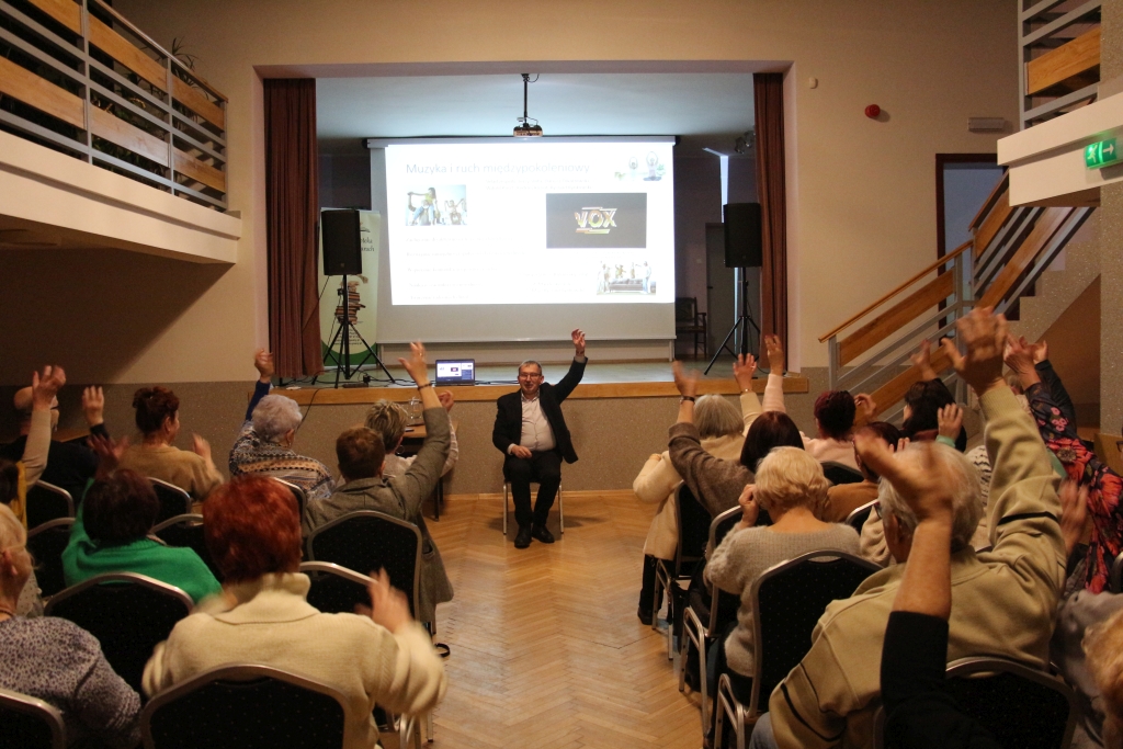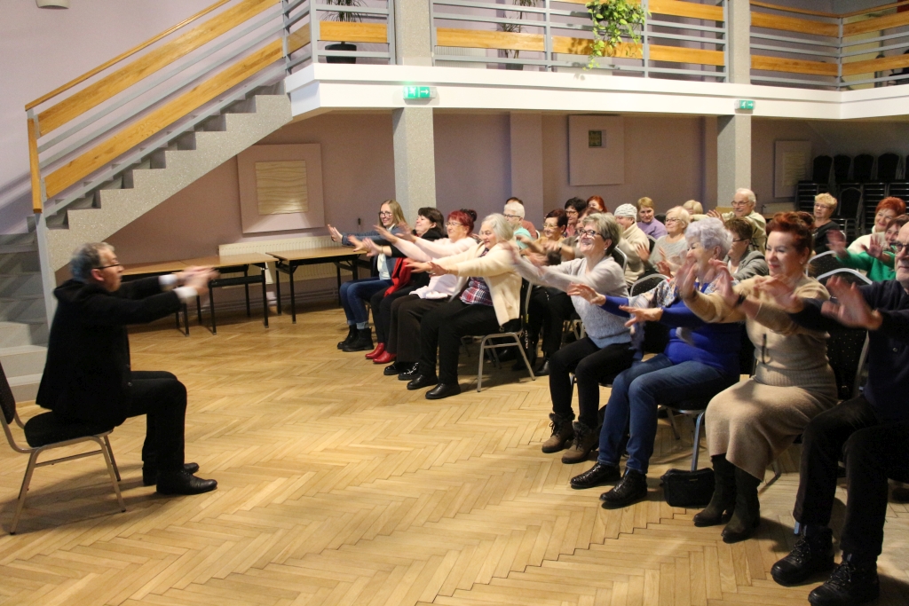Spotkanie upłynęło w atmosferze skupienia, ale i ciepłych wspomnień. Nie zabrakło oczywiście wspólnego śpiewania oraz nowoczesnej formy tańca siedząc na krześle. Na twarzach słuchaczy pojawiały się uśmiechy, czasem zamyślenie, jakby każda opowieść uruchamiała prywatny magnetofon pamięci. Wykład prof. Mirosława Kisiela przypomniał nam, że piosenki minionych lat wciąż żyją – nie tylko w archiwach i na płytach, lecz przede wszystkim w nas samych, jako rytm przemian i czar wspomnień, do których chętnie wracamy.