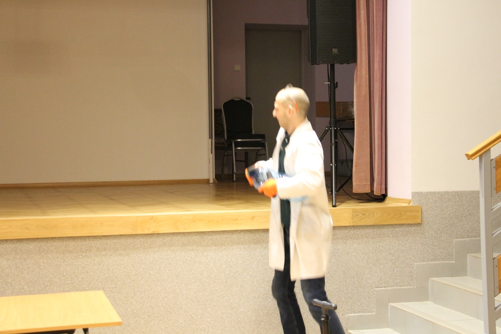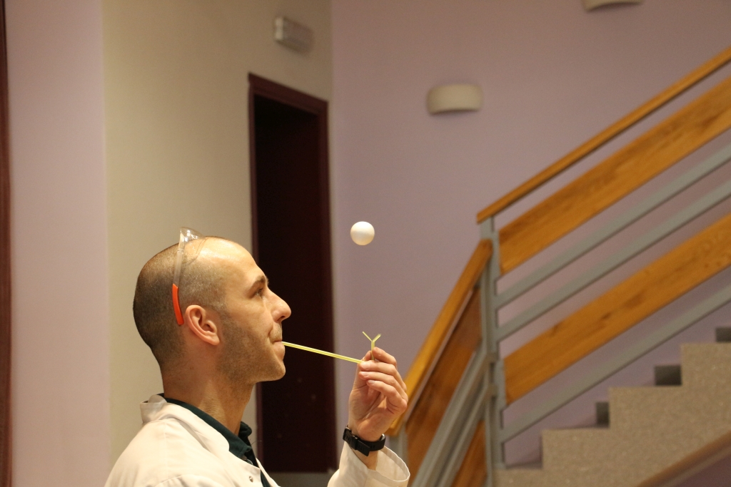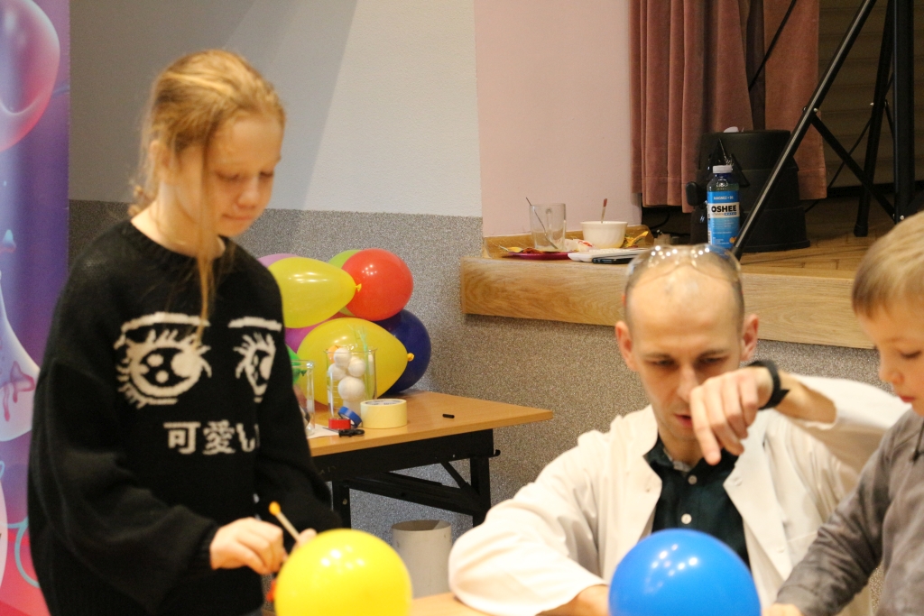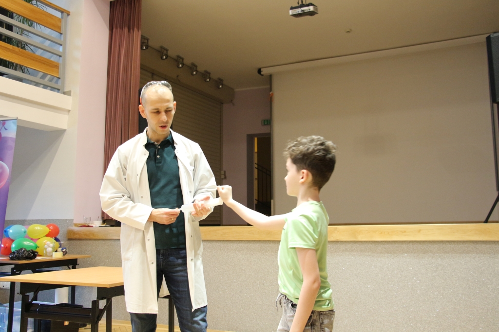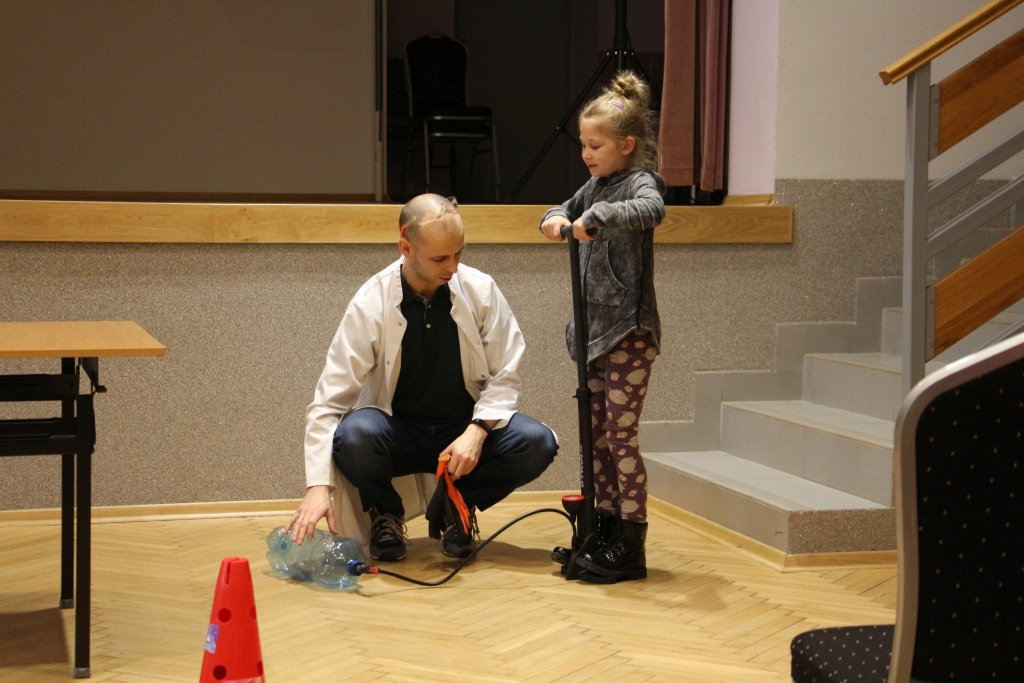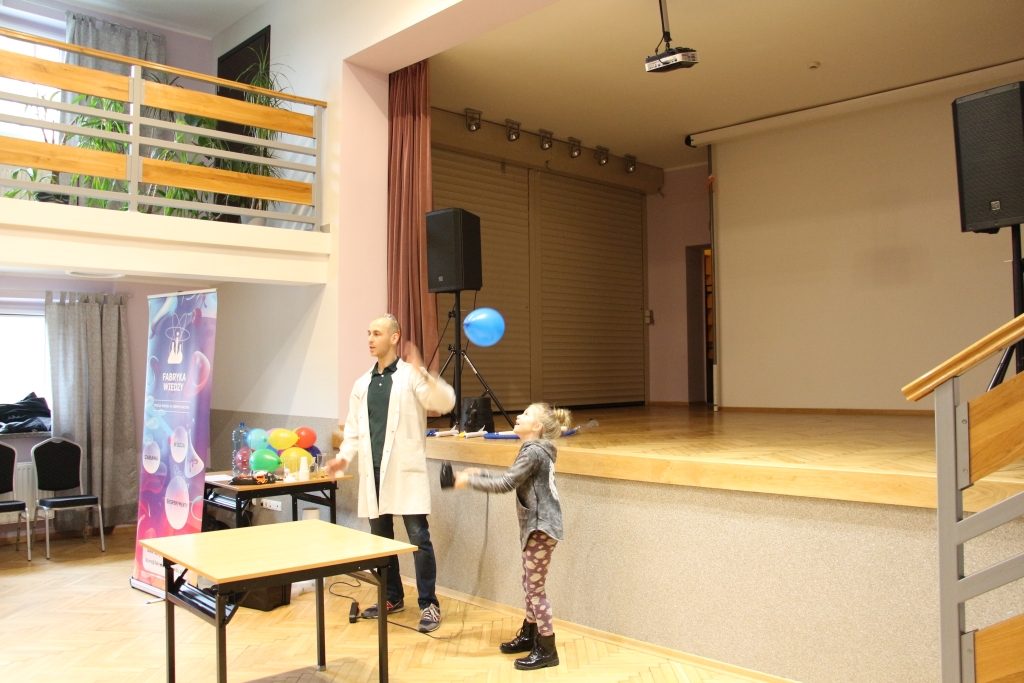 Skonstruowaliśmy wyrzutnię rakiet, która naprawdę działała! Strzelaliśmy powietrzem z bazooki – nie było to łatwe. Obserwowaliśmy „tańczące” piłeczki i wirujące baloniki. To co działo się na naszych oczach było magiczne, ale młodzi studenci, którzy bardzo aktywnie uczestniczyli w eksperymentach potwierdzają, że to jednak była nauka w najczystszej postaci. Ale – jak na każdych zajęciach z Panem Łukaszem, czujemy się zaczarowani.