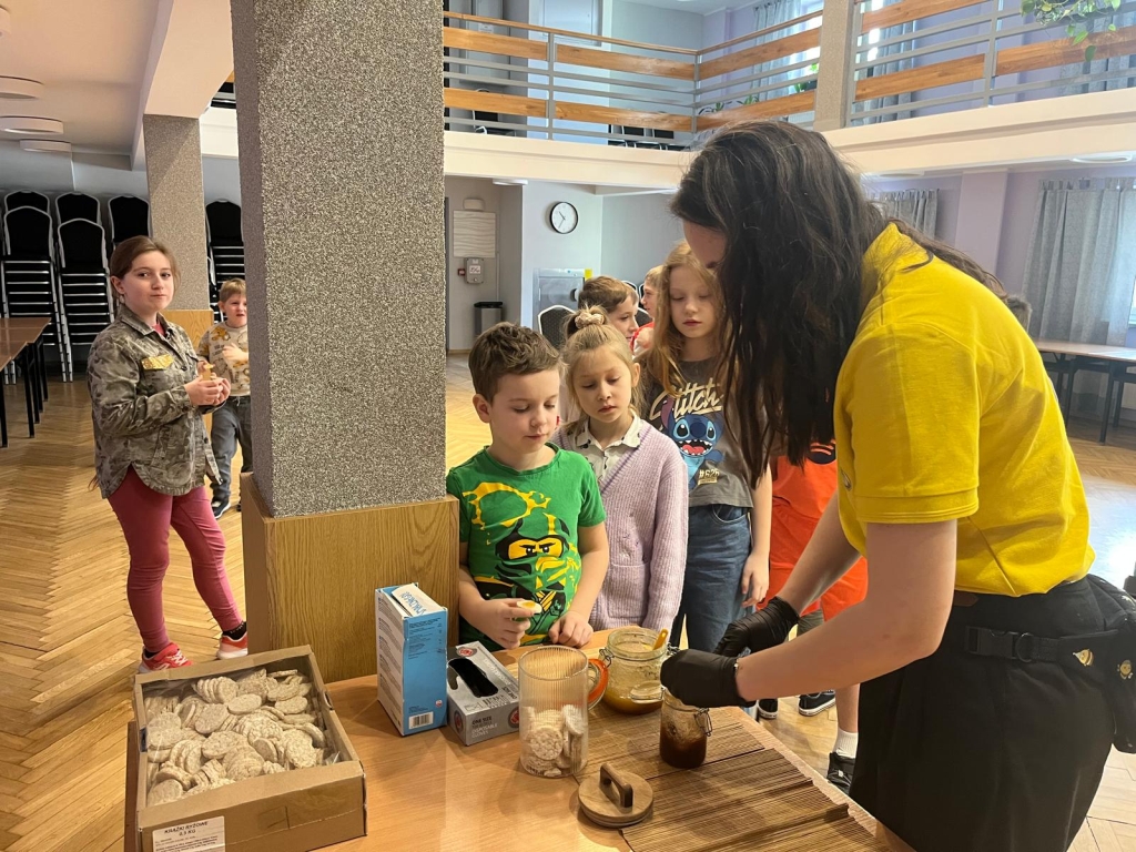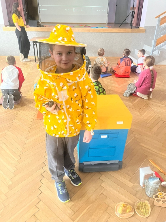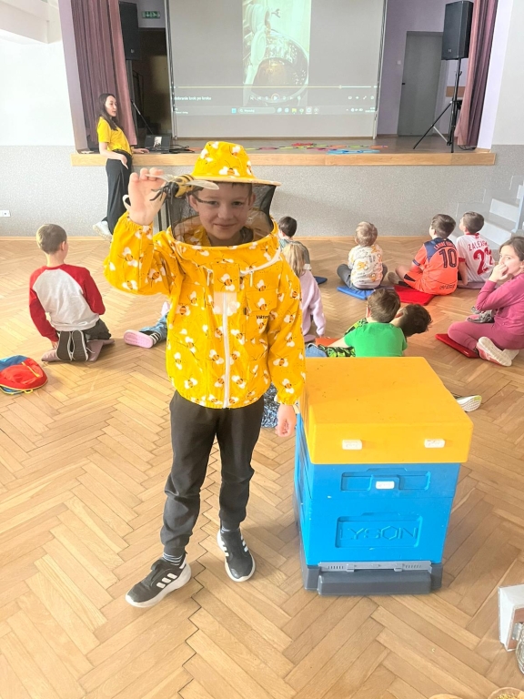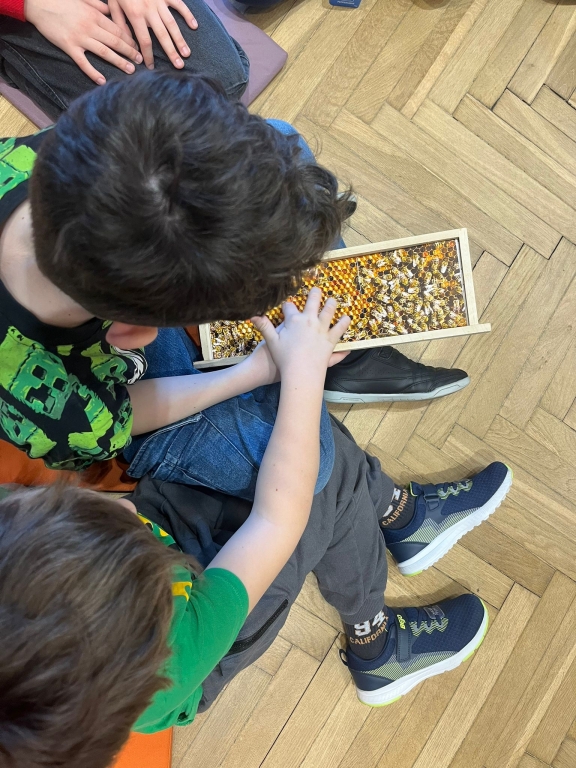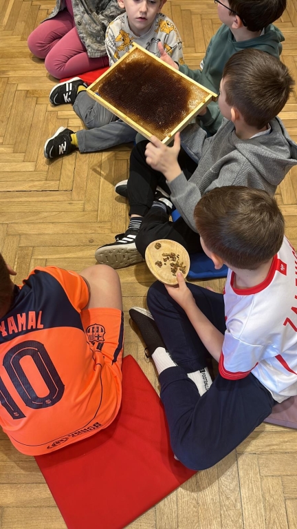 Podczas spotkania dzieci odkrywały sekrety ula: kim jest królowa, dlaczego robotnice nigdy nie próżnują i jak z nektaru rodzi się miód. Te opowieści nie były jednak tylko teorią – uczestnicy mogli z bliska obserwować pracę pszczół w ulu pokazowym, śledząc ich ruchy, jakby podglądali misternie zaplanowany spektakl natury.