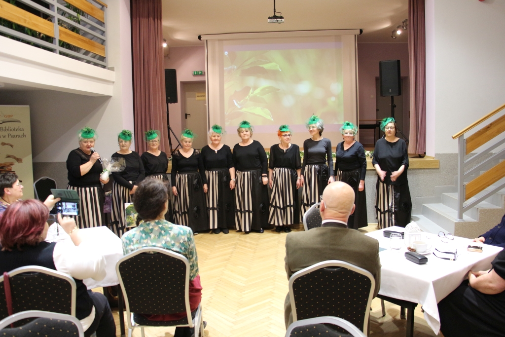 Wiosna to wiodący temat ostatniej KAWIARENKI LITERACKIEJ, która odbyła się w naszej bibliotece w miniony czwartek. Tradycyjnie już wspólną lekturę tekstów opowiadających, tym razem, o wiośnie uświetnił występ strzyżowickiego Teatru "Wszystko przed nami" pod kierownictwem Ewy Pawik. W przygotowanej przez teatr inscenizacji wykorzystano film zrealizowany przez Jessicę Goldę. Wiosenną literaturę czytali dla nas: Aleksander Jewak - przewodniczący Rady Gminy Psary, Maria Olszewska - nauczycielka SP Psary, Tomasz Sadłoń - Wójt Gminy Psary, Mirella Barańska-Sorn - Sekretarz Gminy Psary, Anna Nagły - radna, Anna Gwiazda - radna, Dorota Pronobis - Dyrektor SP Strzyżowice, Dyrektor GBP Psary Helena Warczok oraz stali bywalcy kawiarenki Danuta Kołacz, Katarzyna Litwinowicz oraz Łukasz Kwaśny.