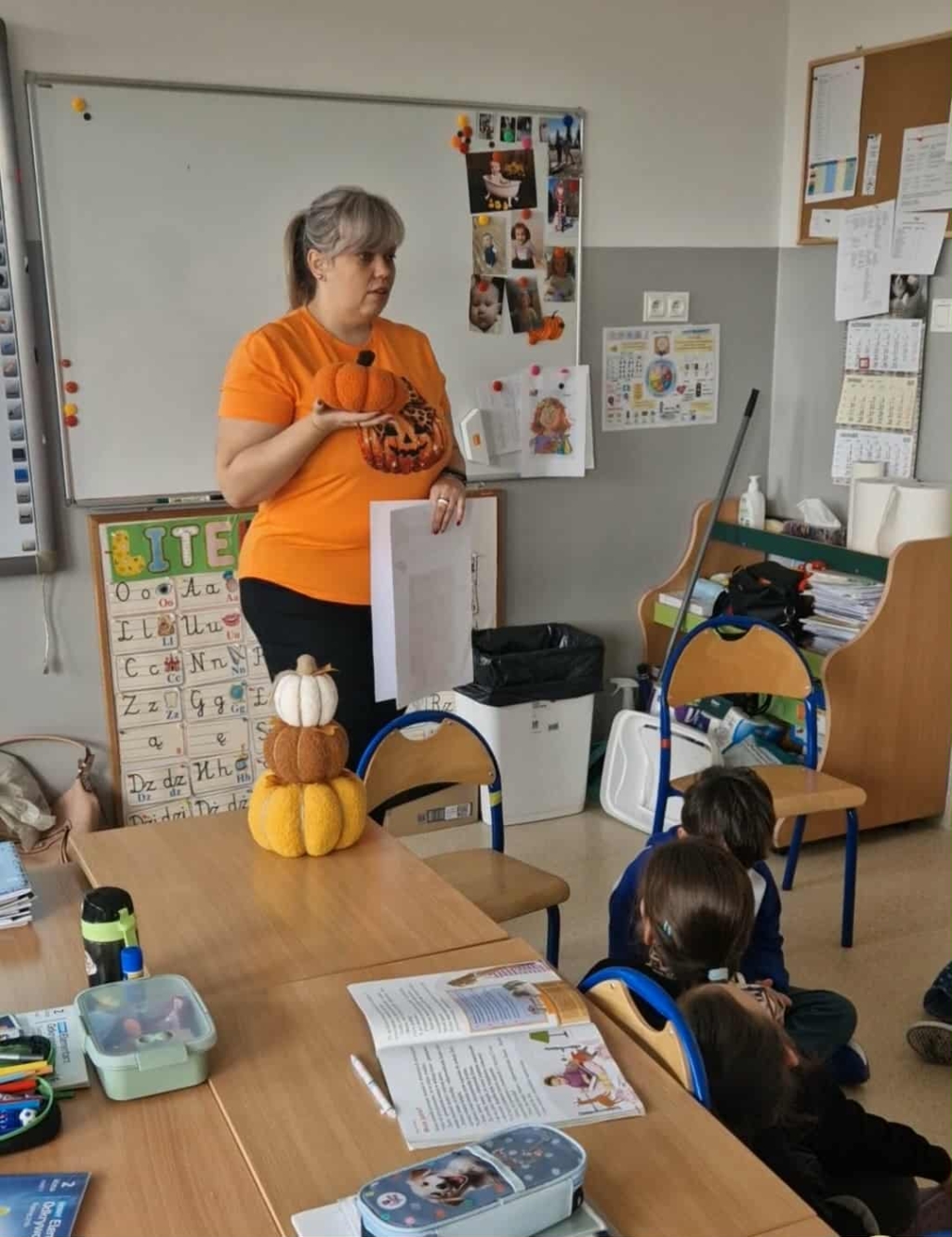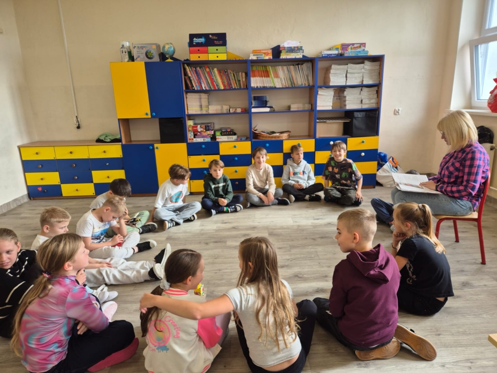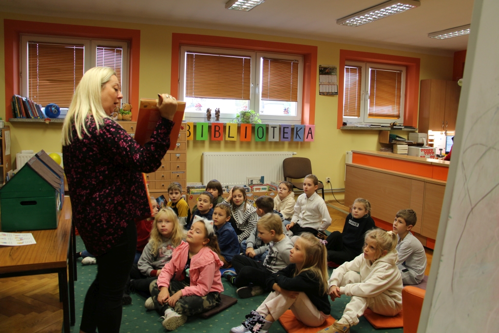 W dniu 28 października 2025 r. w klasach 1-3 Szkoły Podstawowej im S. Polakowskiego w Strzyżowicach odbyło się spotkanie czytelnicze zorganizowane przez Gminną Bibliotekę Publiczną, Filię Nr 2 w Strzyżowicach. Jest ono kontynuacją projektu czytelniczego pod hasłem „Przyjemność Czytania”, promującego czytanie i zachęcające najmłodszych czytelników do korzystania z Biblioteki. Z okazji zbliżającego się święta dyni uczniowie wysłuchali opowieści pt. „Franklin i wielka dynia”.