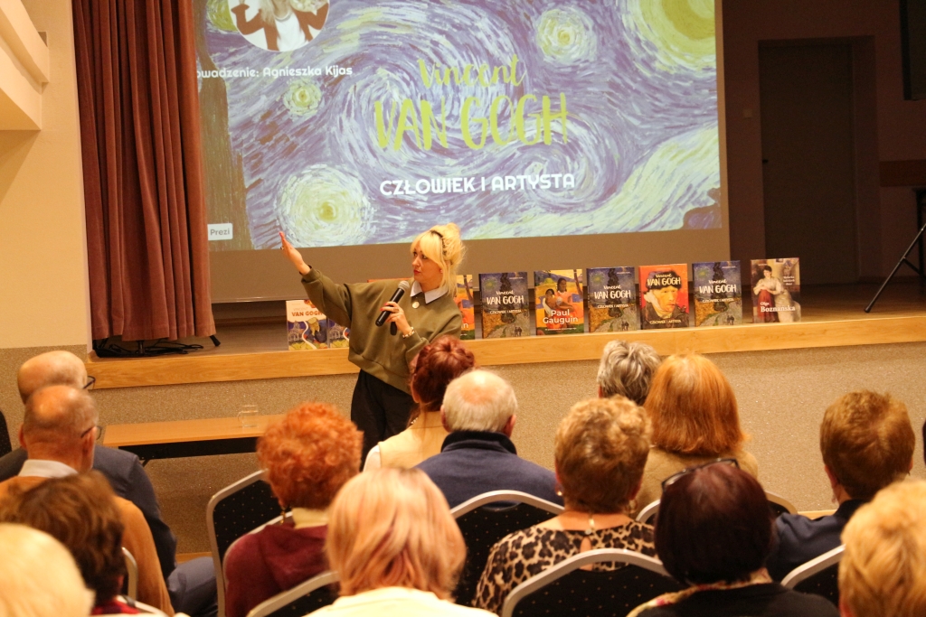 Wykład inauguracyjny, poświęcony wielkiemu artyście-malarzowi Van Goghowi wygłosiła Agnieszka Kijas – krytyk sztuki i autorka książek, m.in.: biografii Van Gogha, która z pasją opowiadała o artystycznej drodze tego holenderskiego malarza.