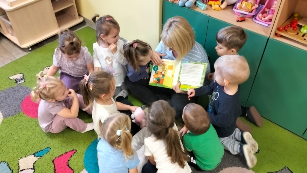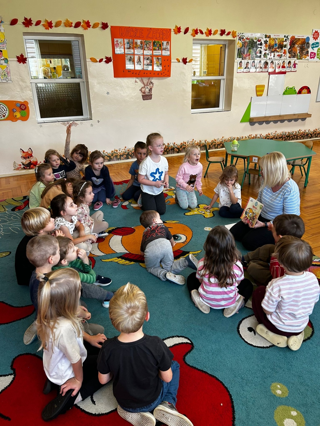 Dnia 29 października 2025 roku w przedszkolu w Sarnowie odbyło się spotkanie czytelnicze w grupach Maleństwa i Tygryski. Zajęcia poprowadziła bibliotekarka z Filii nr 3 Gminnej Biblioteki Publicznej w Sarnowie.