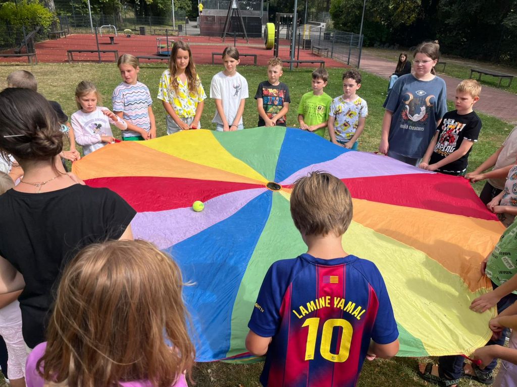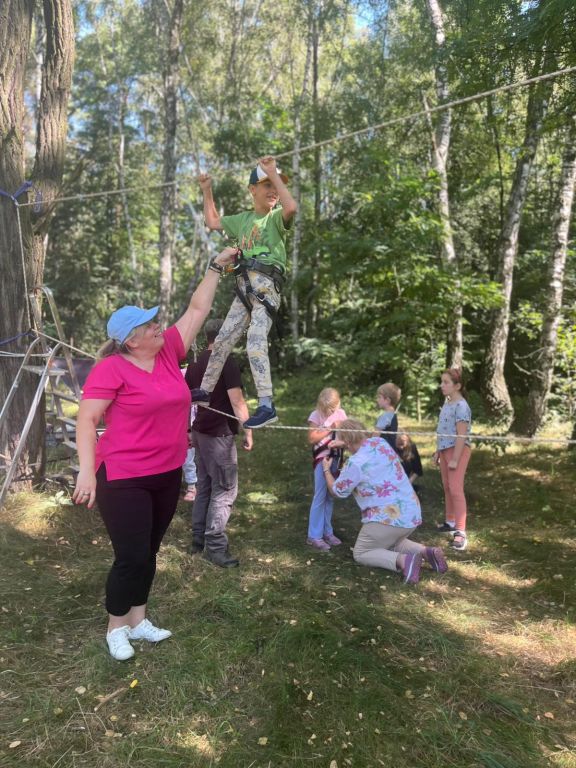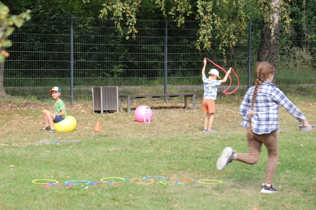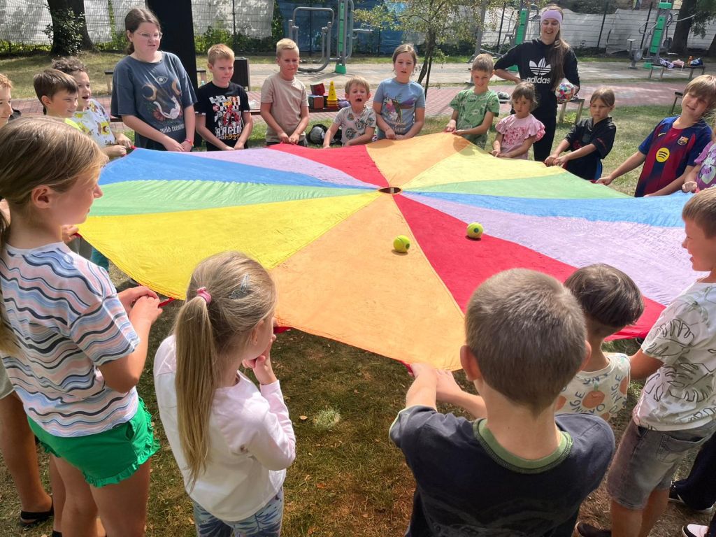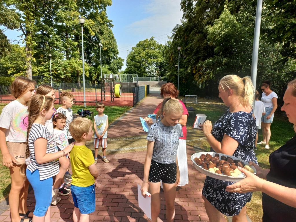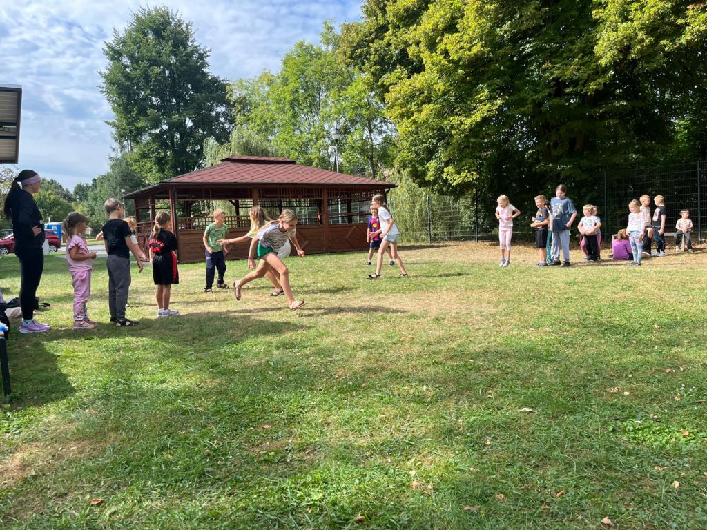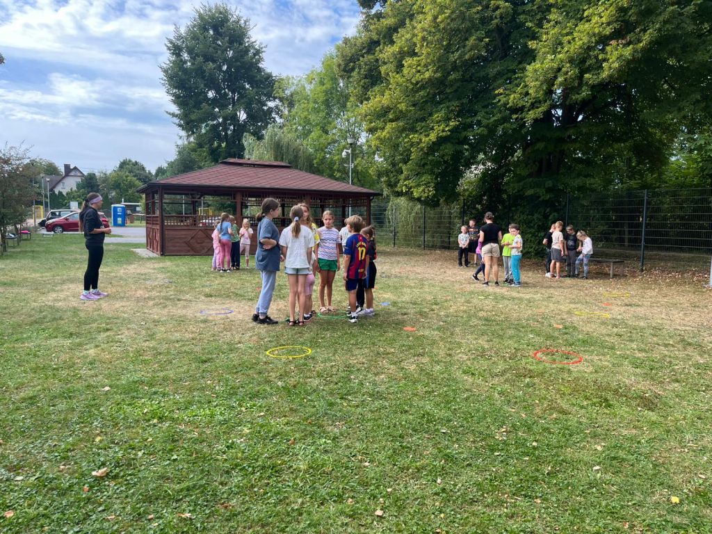 Pani Oliwia przygotowała stacje testujące szybkość, zwinność i współpracę w drużynach. Były wyścigi rzędów, skoki w workach, przeciąganie liny i zabawy z piłką. Uczestnicy wykazali się ogromnym entuzjazmem i duchem rywalizacji.