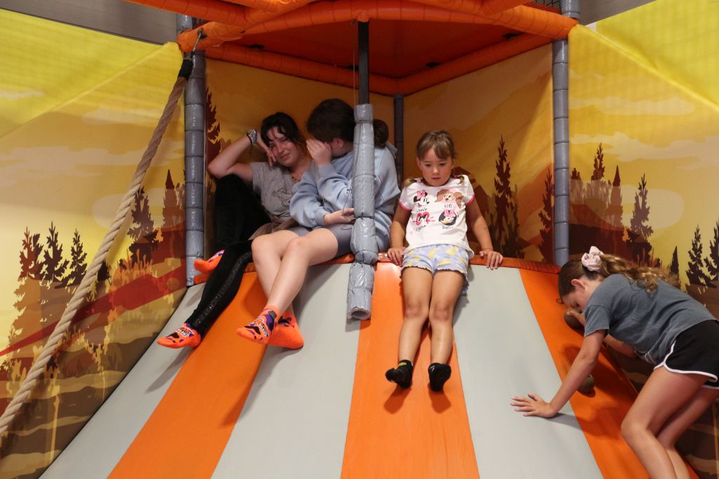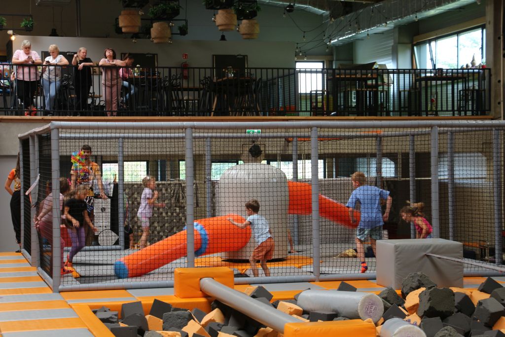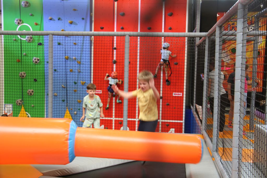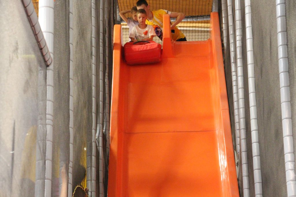 Już od progu uwagę dzieci przyciągnął kolorowy „małpi gaj”. Tunele, zjeżdżalnie i siatkowe mostki sprawiły, że maluchy niemal natychmiast ruszyły do zabawy. Starsze dzieci szybko obrały inny kierunek – w stronę trampolin i ogromnej poduchy do skoków. Tam przez długie minuty trwały zawody: kto skoczy wyżej, kto wykona bardziej widowiskowe obroty.
