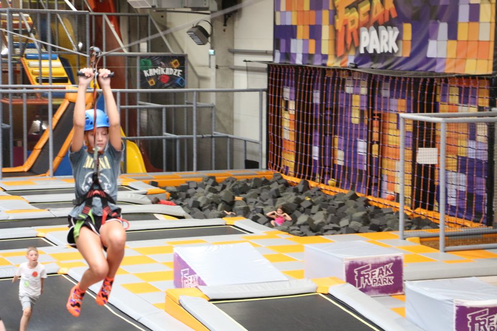 Freak Park w Będzinie: kolorowy „małpi gaj”, park trampolin, ścianka wspinaczkowa, tyrolka pod dachem. Uśmiech i ruch nie opuszczały dzieci nawet po kilku godzinach zabawy.