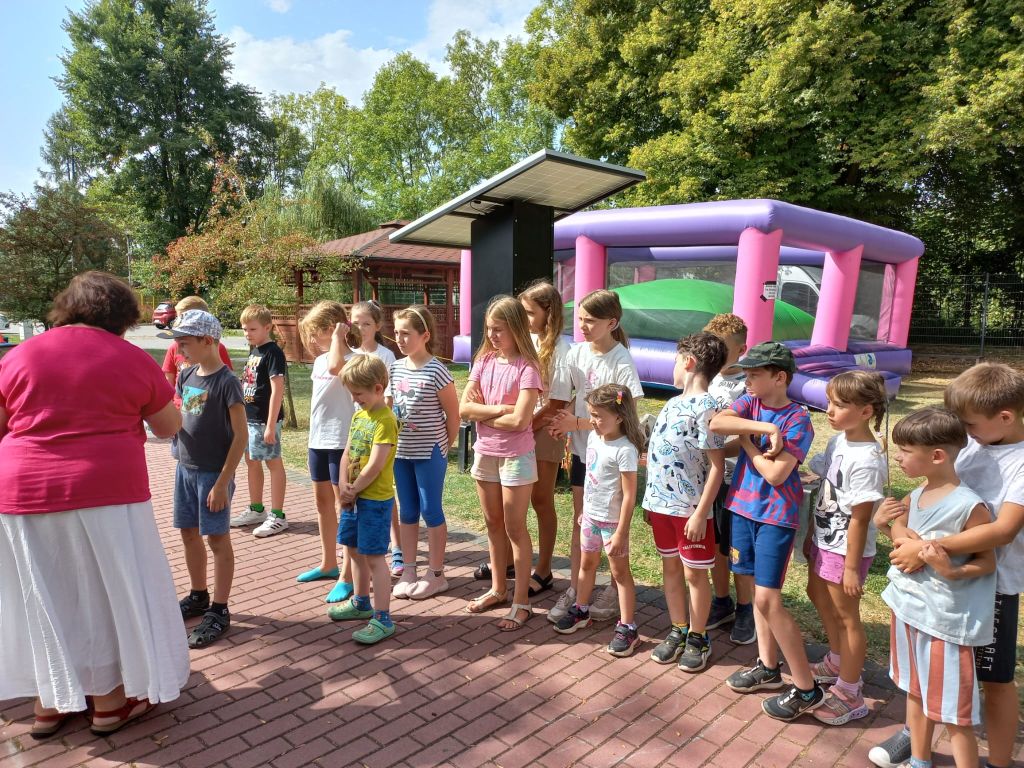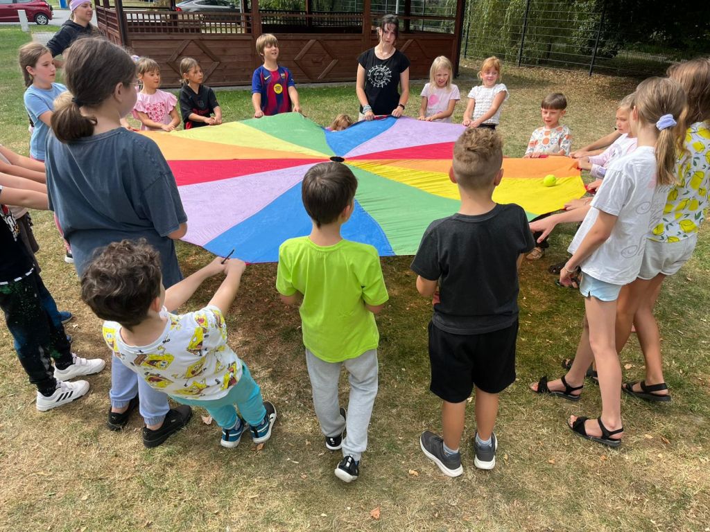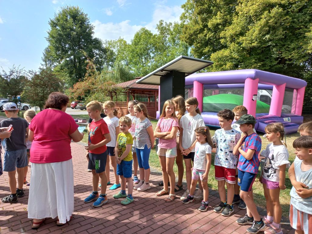 „Wakacje z Biblioteką” to dziesięciodniowa przygoda, w której wzięło udział ponad 30 dzieci z naszej gminy. Codziennie czekały na nie nowe wyzwania – od bezpośredniego kontaktu z naturą, przez aktywności sportowe i edukacyjne, po wielkie atrakcje rozrywkowe. Tegoroczna edycja obfitowała w różnorodne formy zabawy i nauki, które miały na celu rozwijać ciekawość świata, wspierać pracę zespołową i promować zdrowy tryb życia.