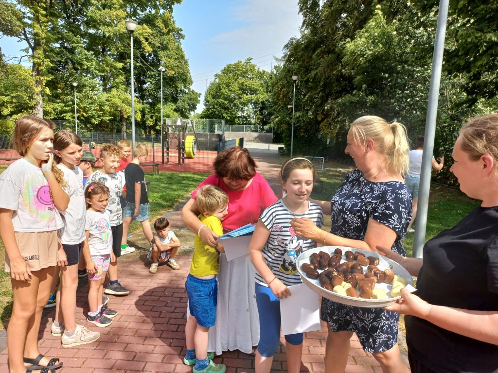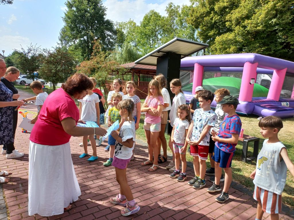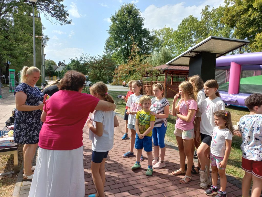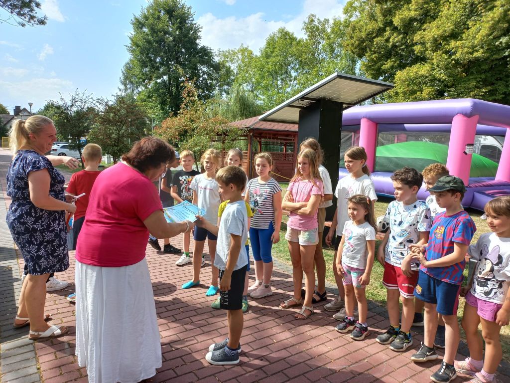 Zakończenie "Wakacji z Biblioteką" to przede wszystkim wręczenie pamiątkowych dyplomów każdemu uczestnikowi. Dokonała tego dyrekto GBP w Psarach Helena Warczok. Potem nastąpiła wielka wojna na kolorowy proszek i szaleństwo na dmuchanych zjeżdżalniach. Po intensywnych dniach pełnych wrażeń dzieci opuszczały bibliotekę zmęczone, ale pełne radosnych wspomnień, gotowe na powrót do szkoły z uśmiechem na twarzy.
