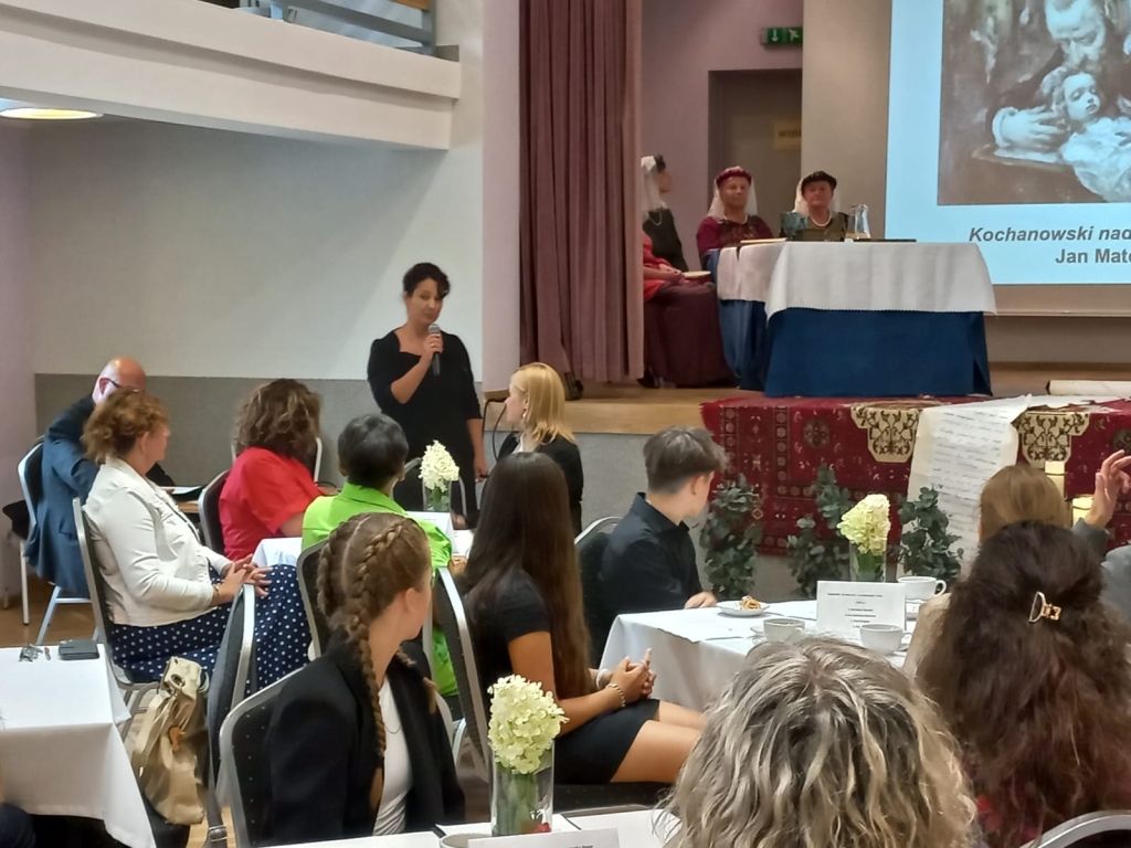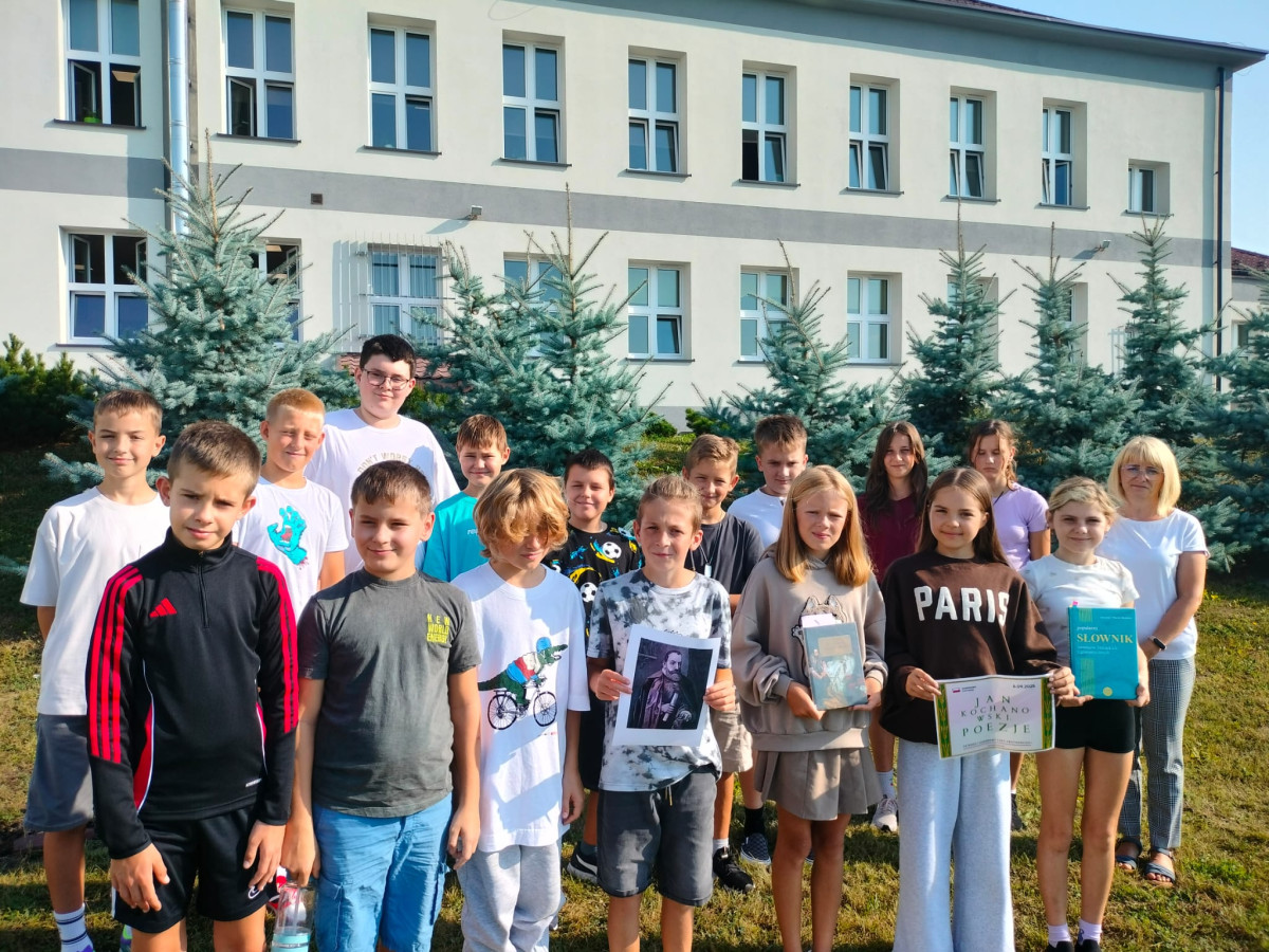 Uczniowie mieli również okazję sami wcielić się w role lektorów i przeczytać wybrane fragmenty poezji Kochanowskiego. Na zakończenie spotkania każdy uczestnik otrzymał pamiątkowy wydruk z okolicznościową pieczęcią, a całość uwieczniono na pamiątkowych zdjęciach.